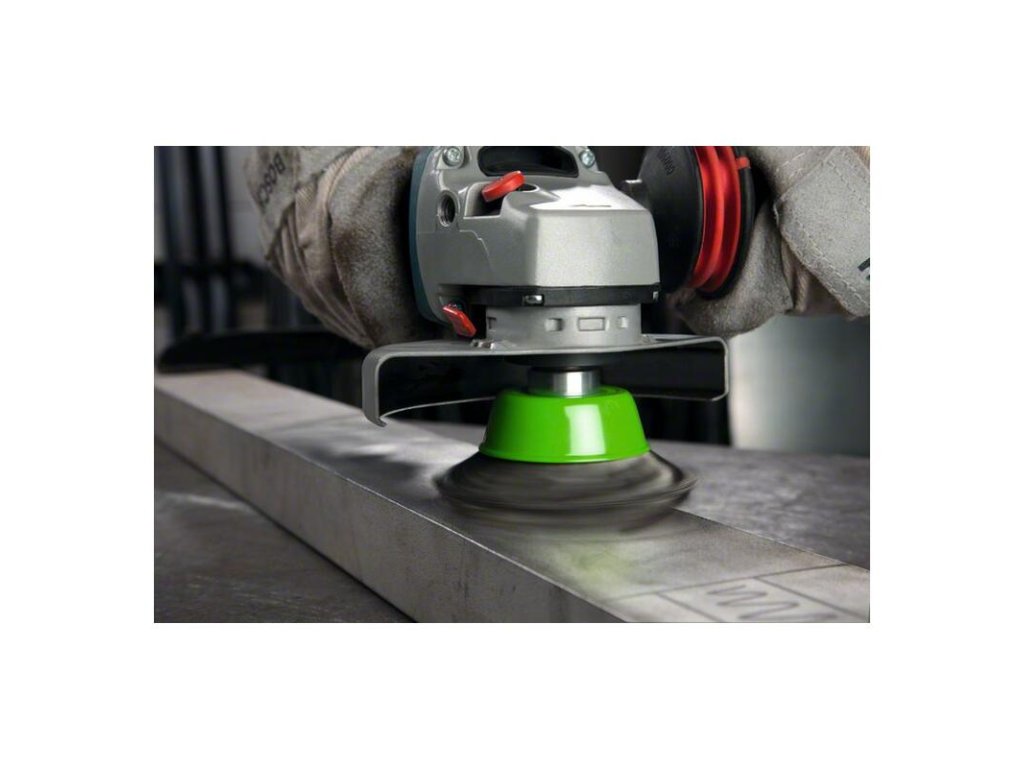 Čistenie nehrdzavejúcej ocele s dlhou životnosťou! Potrebujete odolnú miskovú kefu na čistenie nehrdzavejúcej ocele a neželezných kovov? Vyskúšajte čistiacu miskovú kefu PRO Stainless Steel clean. Má vysokokvalitný vlnitý drôt, aby ste opakovane dosiahli hladký povrch. Čistiaca misková kefa PRO Stainless Steel clean bude skvelým a odolným doplnkom do každej dielne na spracovanie ocele, ak potrebujete vyčistiť švy zvarov a odstrániť staré nátery a povrstvenia. Má prémiový vlnitý drôt, vďaka čomu na väčších povrchoch z nehrdzavejúcej ocele a neželezných kovov dosiahnete jemný povrch. Hrubší drôt je vhodný na rýchle a hrubé povrchové úpravy, zatiaľ čo s tenším drôtom dosiahnete jemnejšie a hladšie povrchy.
