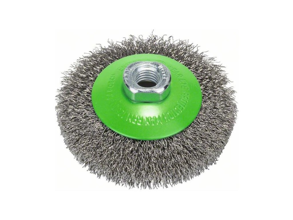 Drôtená kefa kužeľová vlnitá nehrdzavejúca oceľ nehrdzavejúca D100mm 0,35mm M14 - Bosch