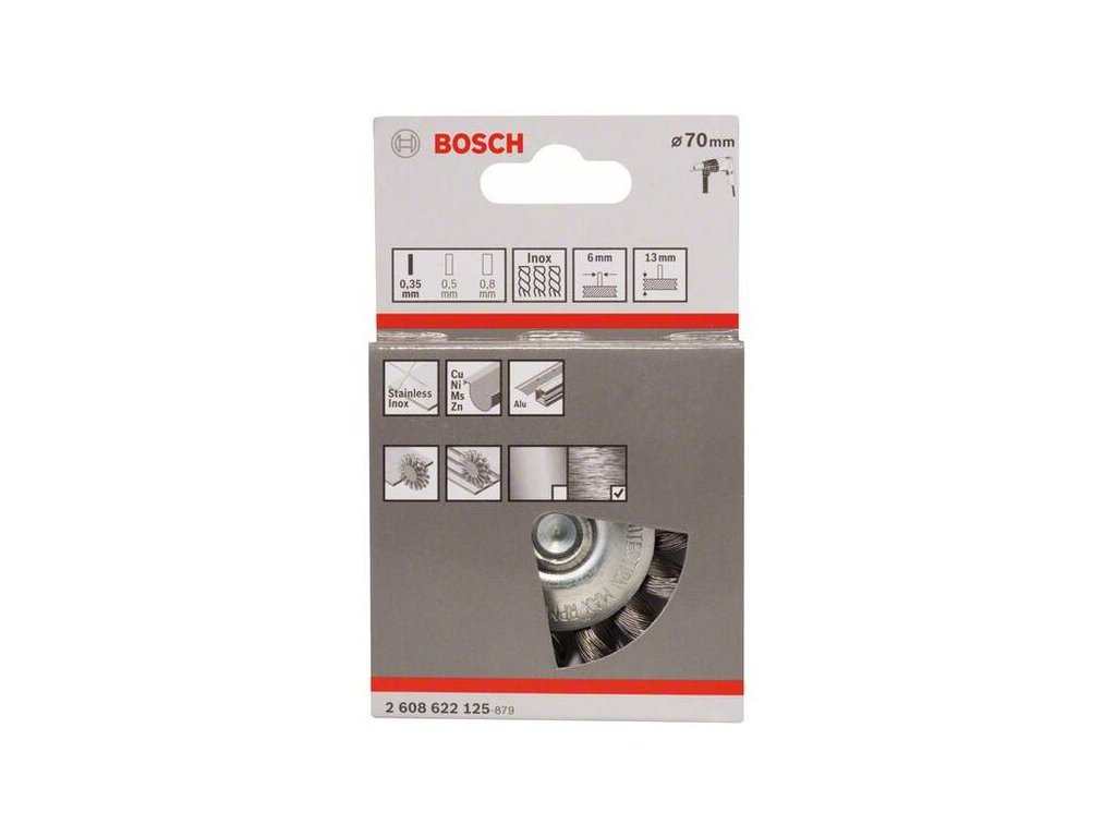 Drôtená kefa radiálna spletaná nehrdzavejúca oceľ D70mm 0,35mm 14mm - Bosch