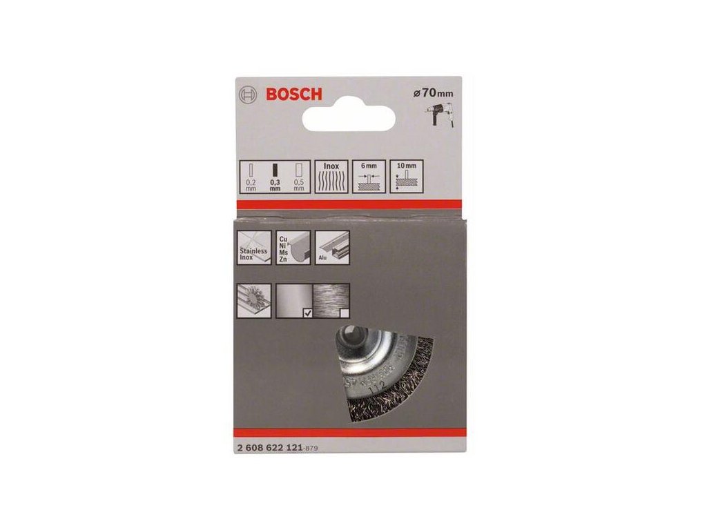Drôtená kefa radiálna vlnitá nehrdzavejúca oceľ D70mm 0,3mm - Bosch