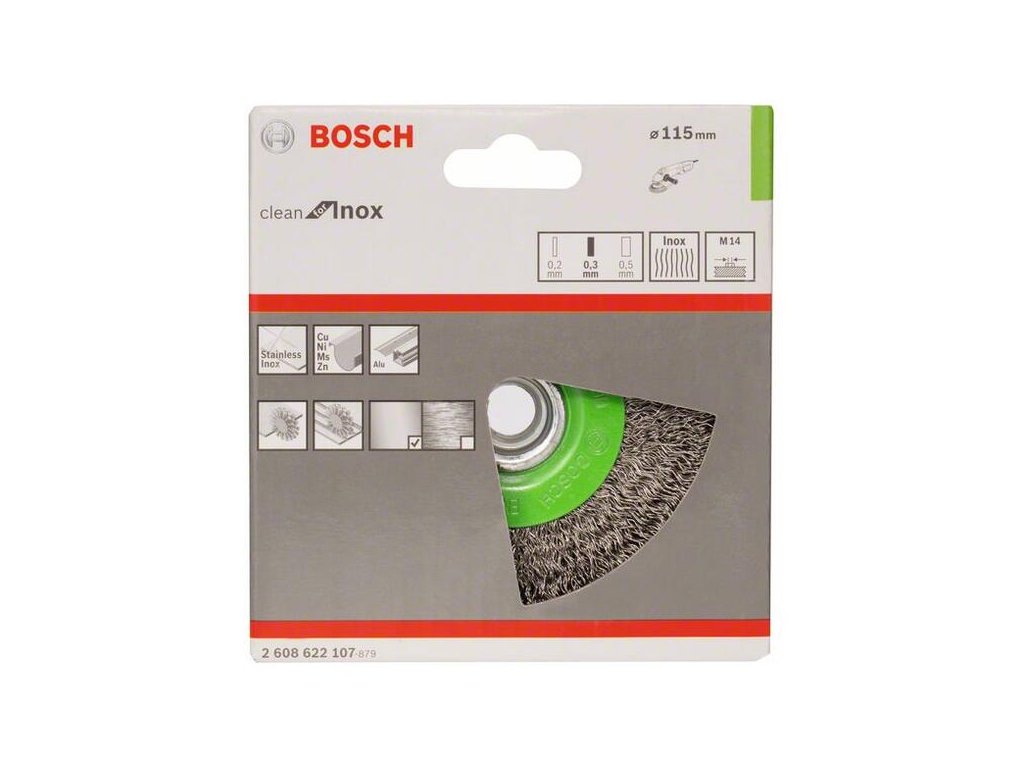 Bosch Drôtená kefa radiálna vlnitá oceľ nehrdzavejúca D115mm 0,3mm M14 2608622107