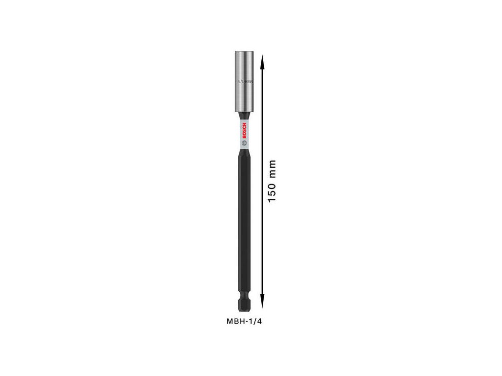 Tento predĺžený držiak bitov s dĺžkou 150 mm vám umožní pracovať v hlbokých a ťažko prístupných miestach. Jeho konštrukcia je zosilnená pre použitie s rázovým náradím. Silný magnet zaisťuje bezpečné uchytenie bitu.