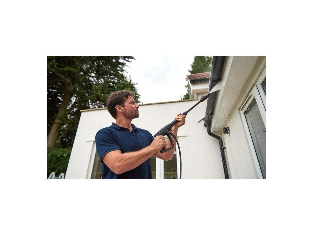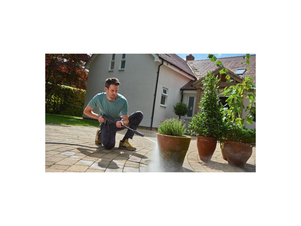 - Široký pevný vejárový prúd je perfektný na oplachovanie