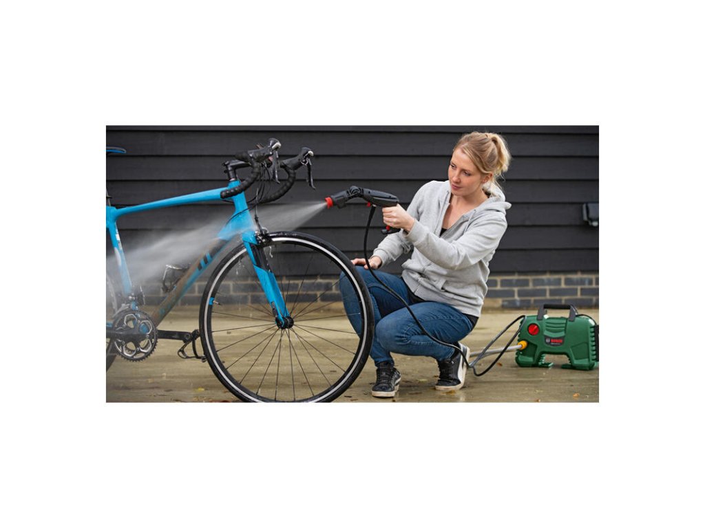 Vysokotlakový čistič EasyAquatak 100; Šikovný, 360°, zvládne všetky čistiace práce okolo domu; Dýza Bosch 360° sa môže zalomiť na čistenie ťažko dostupných miest bez námahy; Ovládanie jednou rukou umožňuje voľnej ruke asistovať pri čistení; Nastaviteľná dýza – od silného prúdu až po jemné oplachovanie; 450 ml vysokotlaková dýza na čistiaci prostriedok šetrí čas rýchlou aplikáciou čistiaceho prostriedku; Násuvné spojky pre jedinečné pohodlie; 360° vysokotlaková pištoľ Bosch; Vysokotlaková hadica 3 m; Vysokotlaková dýza na čistiaci prostriedok, 450 ml; Vodný filter; V škatuli