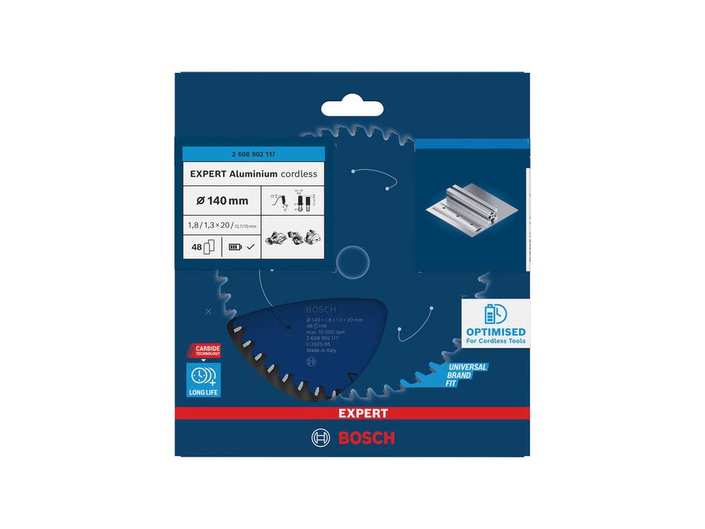 Pre akumulátorové píly s priemerom 140 mm je určený tento špecialista na hliník. Kotúč Bosch EXPERT Aluminium má extra tenké telo, ktoré znižuje trenie a odpor pri rezaní. To znamená menej zaťaženia pre motor a dlhšiu prácu na batériu pri zachovaní vysokej kvality rezu.