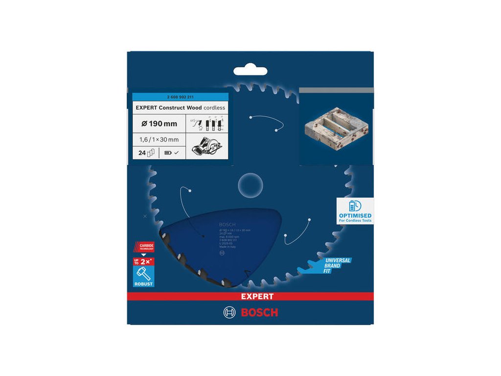 Pre náročné podmienky na stavenisku je tu kotúč Bosch EXPERT Construct Wood. Je navrhnutý tak, aby odolal nárazom pri rezaní dreva, v ktorom sú skryté klince alebo zvyšky malty. Tenký profil kotúča je optimalizovaný pre akumulátorové píly, čím predlžuje ich prevádzkový čas.
