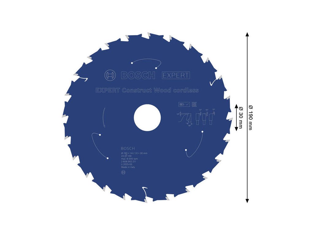 Bosch EXPERT Construct Wood Pílový kotúč na stavebné drevo pre aku píly, 190 x 30 mm, 24 zubov, 2.608.902.211