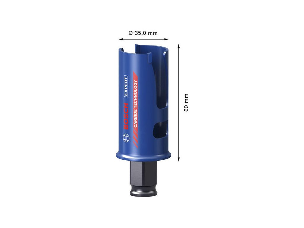 S dierovkou Bosch EXPERT 35 mm zvládnete inštalačné otvory do tehly, dreva či plastov rýchlo a spoľahlivo. Vďaka karbidovým zubom vydrží až 50-násobne dlhšie než bežné nástroje, čo z nej robí ideálnu voľbu pre profesionálne použitie na stavenisku.