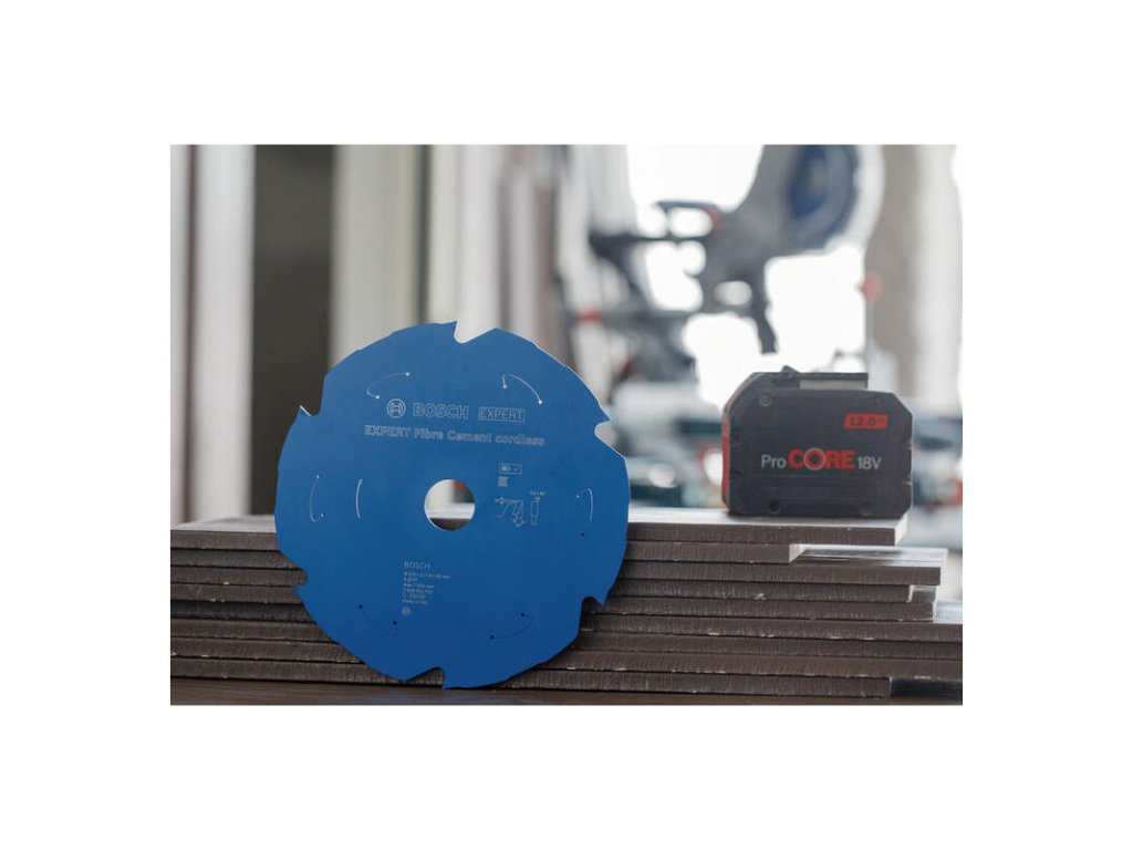 Rezanie veľkých formátov cementovláknitých dosiek vyžaduje spoľahlivý nástroj. Bosch EXPERT Fibre Cement 250 mm s diamantovými zubami je navrhnutý pre maximálny výkon a životnosť. Tenký profil kotúča je ideálny pre akumulátorové náradie.