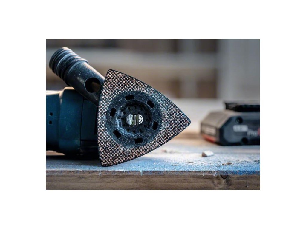 - Deltovitý tvar dosiahne aj do rohov a zaistí účinné brúsenie