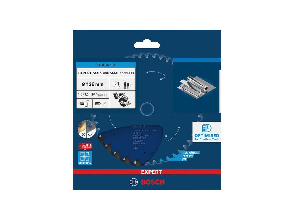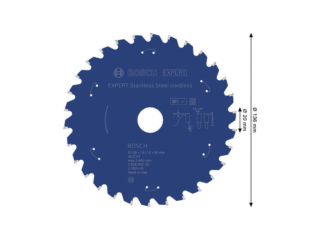 Bosch EXPERT Stainless Steel Pílový kotúč na nerez pre aku píly, 136 x 20 mm, 30 zubov, 2.608.902.132