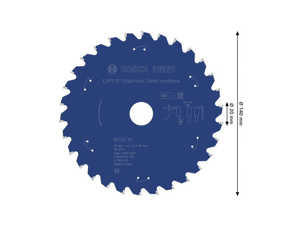 Bosch EXPERT Stainless Steel Pílový kotúč na nerez pre aku píly, 140 x 20 mm, 30 zubov, 2.608.902.133