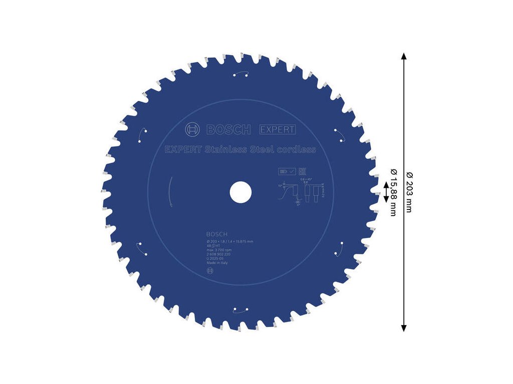 Bosch EXPERT Stainless Steel Pílový kotúč na nerez pre aku píly, 203 x 15,875 mm, 48 zubov, 2.608.902.220