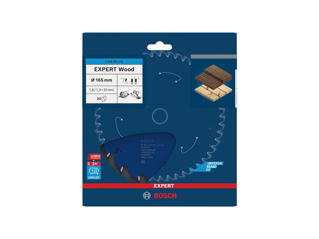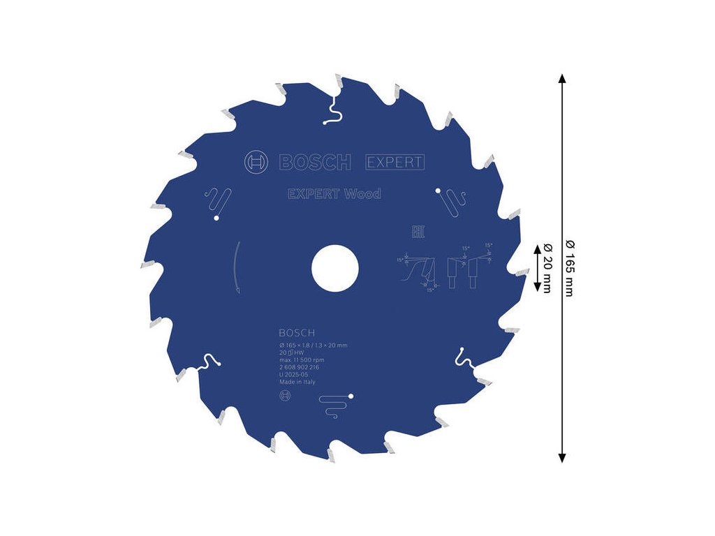 Bosch EXPERT Wood Pílový kotúč na drevo, 165 x 20 mm, 20 zubov, 2.608.902.216