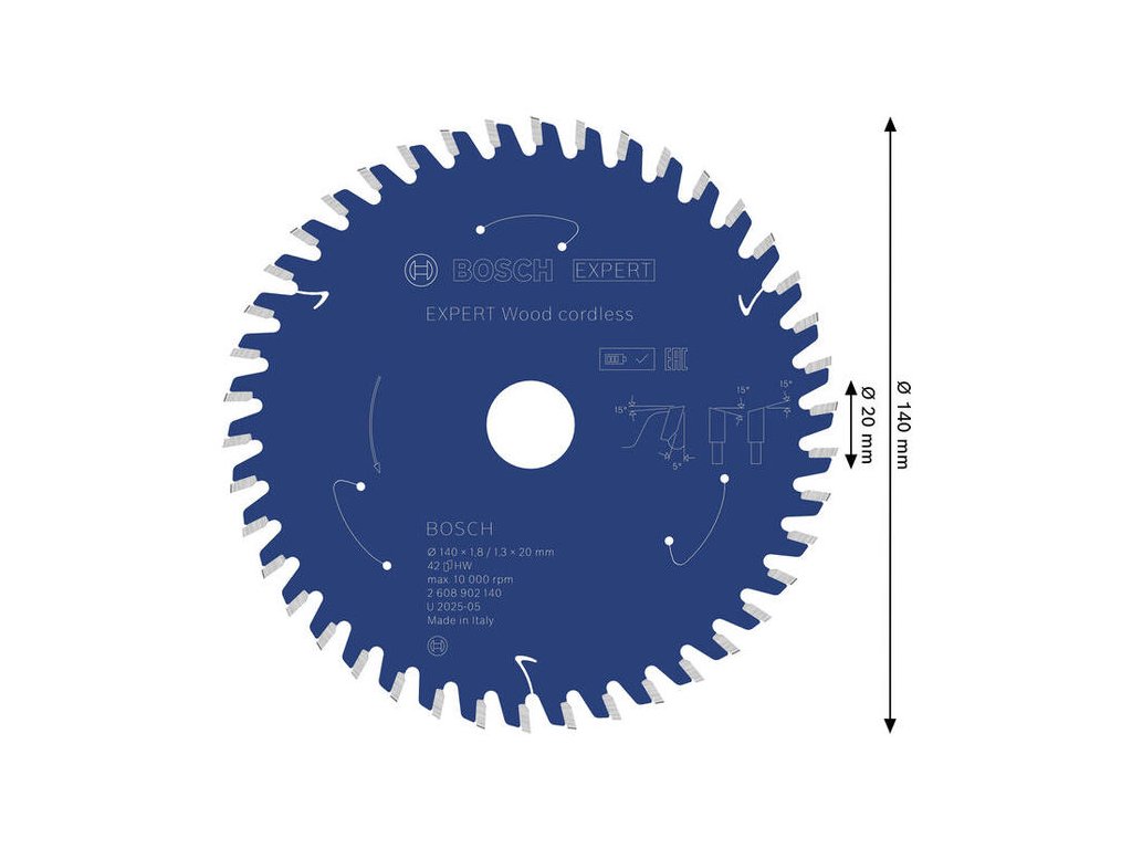 Bosch EXPERT Wood Pílový kotúč na drevo pre aku píly, 140 x 20 mm, 42 zubov, 2.608.902.140