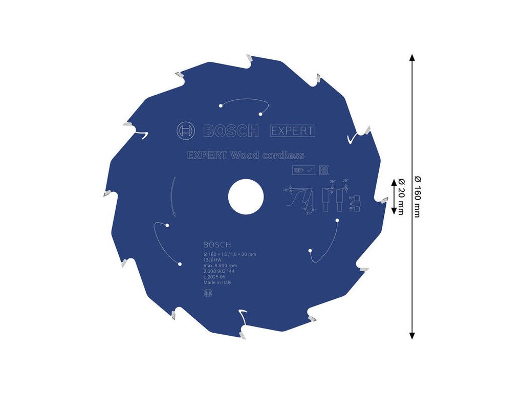 Bosch EXPERT Wood Pílový kotúč na drevo pre aku píly, 160 x 20 mm, 12 zubov, 2.608.902.144