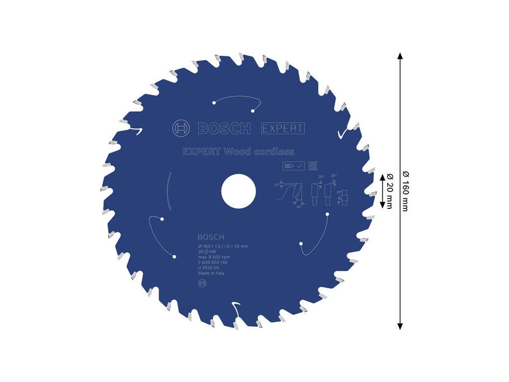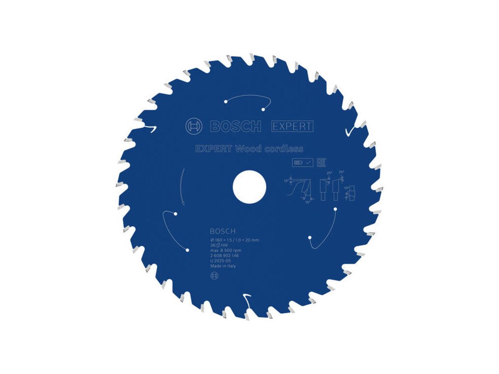 Pre všestranné použitie s aku pílou 160 mm. Kotúč Bosch EXPERT Wood s 36 zubami a hrúbkou len 1,5 mm ponúka skvelú rovnováhu medzi rýchlosťou a kvalitou rezu, pričom maximálne šetrí energiu.