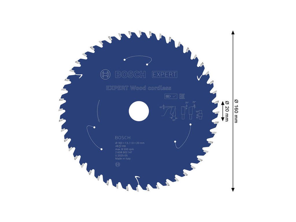 Bosch EXPERT Wood Pílový kotúč na drevo pre aku píly, 160 x 20 mm, 48 zubov, 2.608.902.147