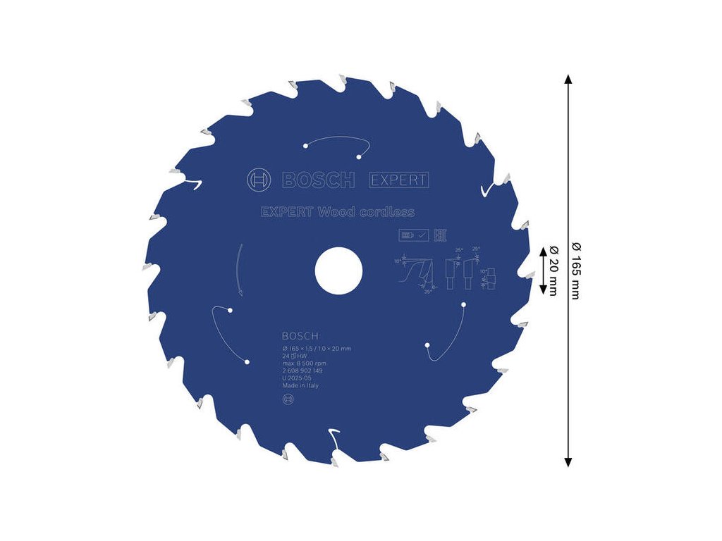 Bosch EXPERT Wood Pílový kotúč na drevo pre aku píly, 165 x 20 mm, 24 zubov, 2.608.902.149