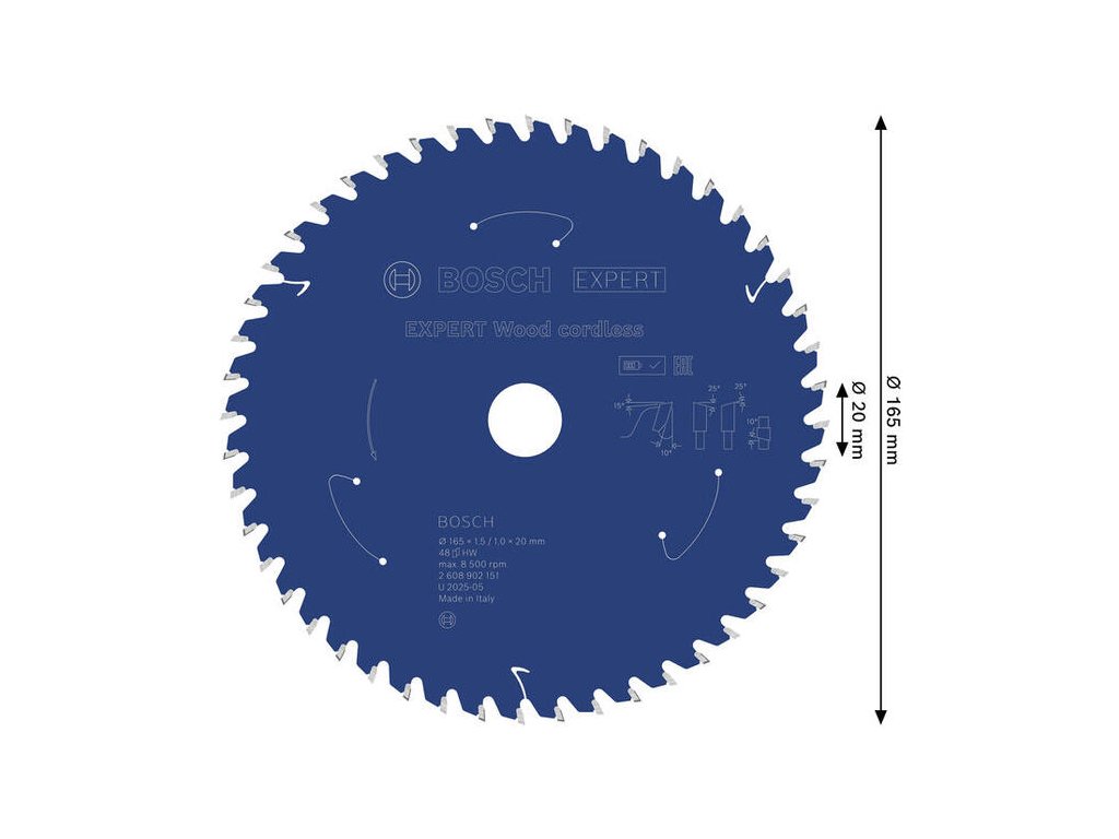 Bosch EXPERT Wood Pílový kotúč na drevo pre aku píly, 165 x 20 mm, 48 zubov, 2.608.902.151