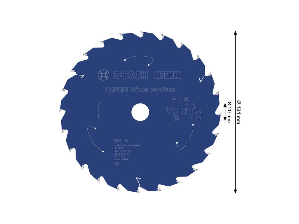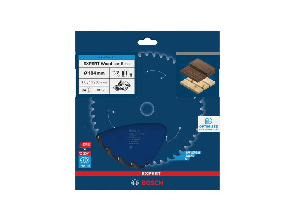 Bosch EXPERT Wood Pílový kotúč na drevo pre aku píly, 184 x 20 mm, 24 zubov, 2.608.902.152