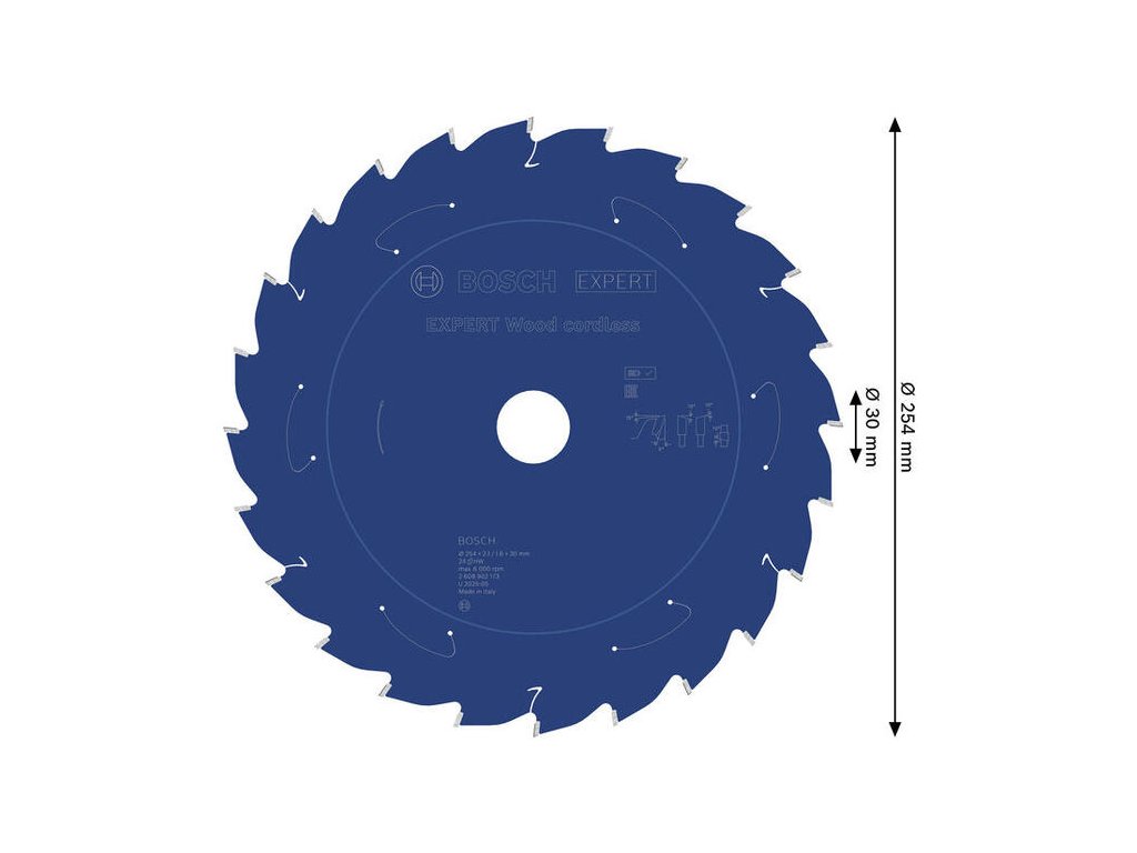 Pre akumulátorové pokosové a stolové píly 254 mm. Kotúč Bosch EXPERT Wood s 24 zubami je určený pre rýchle rezanie. Tenký profil (2,1 mm) maximalizuje výdrž batérie.