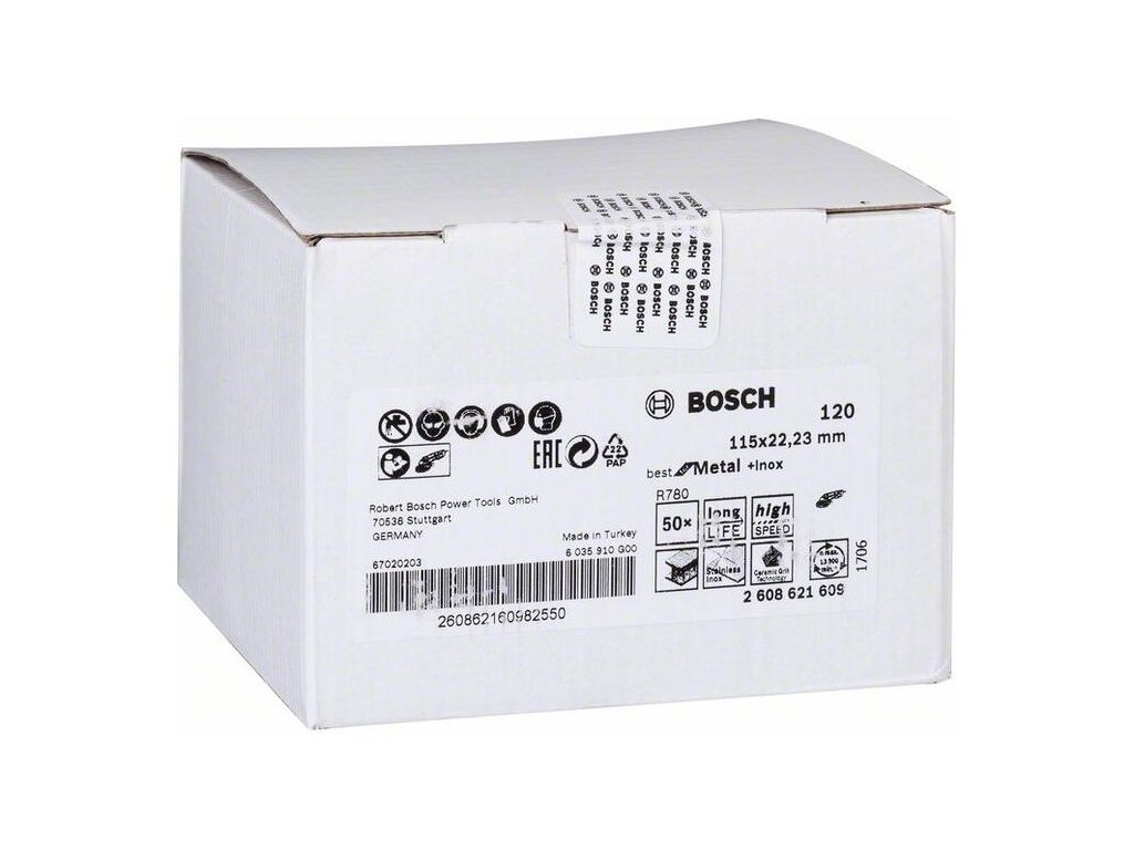 Bosch Fibrový brúsny kotúč R780, na kov nerez 115 mm, 22,23 mm, G120 2608621609