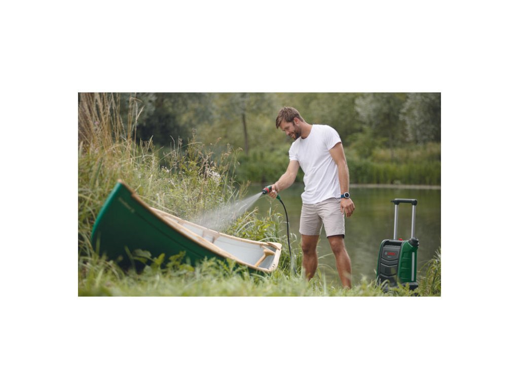Akumulátorové exteriérové čističe Fontus 18V; Všestranné čistenie; Akumulátorové čistenie doma alebo na cestách – po pripojení k vodovodnej sieti alebo použitím vstavanej nádrže objemu 15 litrov; Ideálny čistič na starostlivosť o hodnotné predmety – automobily, motorky, kempingové potreby či bicykle; Univerzálne použitie: štyri druhy vodného prúdu, nastaviteľný tlak vody a kefa SmartBrush; Teleskopická rukoväť a stabilné kolesá na rýchle zostavenie a ľahké ovládanie; Odkladací priestor na príslušenstvo a držiak pištole pre jedinečné pohodlie; Technológia Syneon reguluje spotrebu energie a zaručuje optimálnu účinnosť a dlhší čas prevádzky; POWER FOR ALL: jeden akumulátor pre celý systém náradia Home & Garden; Vodný filter; Striekacia pištoľa; SmartBrush; Hadica 4 m; Kartónová škatuľa