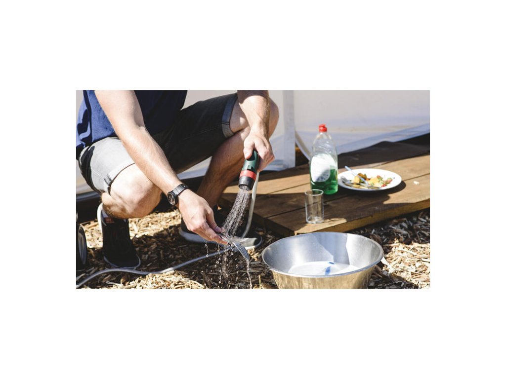 - Akumulátorové čistenie doma alebo na cestách – po pripojení k vodovodnej sieti alebo použitím vstavanej nádrže objemu 15 litrov