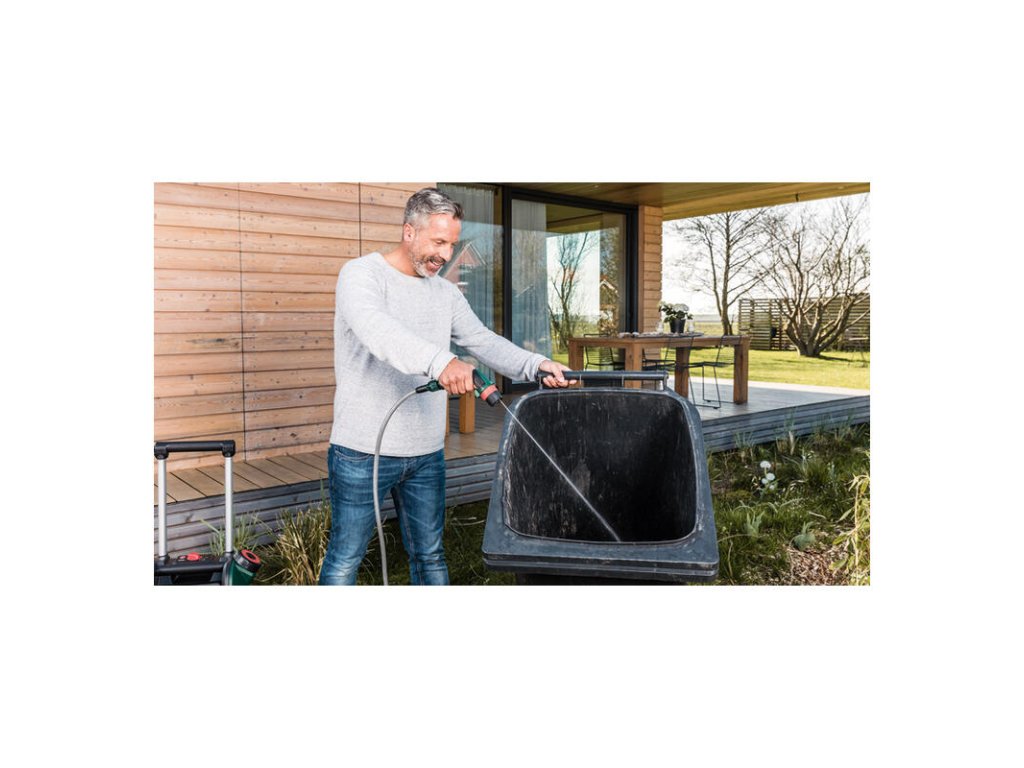 Akumulátorové exteriérové čističe Fontus 18V; Všestranné čistenie; Akumulátorové čistenie doma alebo na cestách – po pripojení k vodovodnej sieti alebo použitím vstavanej nádrže objemu 15 litrov; Ideálny čistič na starostlivosť o hodnotné predmety – automobily, motorky, kempingové potreby či bicykle; Univerzálne použitie: štyri druhy vodného prúdu, nastaviteľný tlak vody a kefa SmartBrush; Teleskopická rukoväť a stabilné kolesá na rýchle zostavenie a ľahké ovládanie; Odkladací priestor na príslušenstvo a držiak pištole pre jedinečné pohodlie; Technológia Syneon reguluje spotrebu energie a zaručuje optimálnu účinnosť a dlhší čas prevádzky; POWER FOR ALL: jeden akumulátor pre celý systém náradia Home & Garden; 1 akumulátor PBA 18V 2.5Ah; Vodný filter; Striekacia pištoľa; SmartBrush; Hadica 4 m; Nabíjačka AL 1810 CV; Kartónová škatuľa