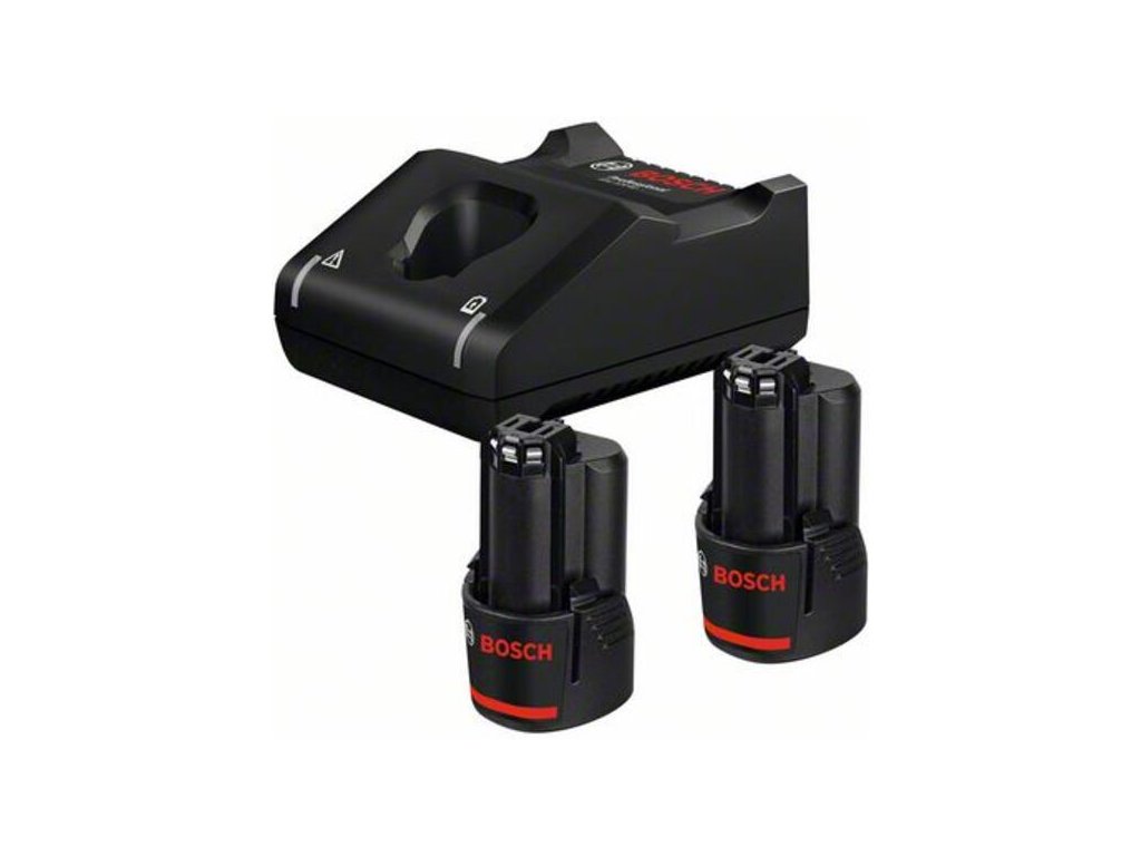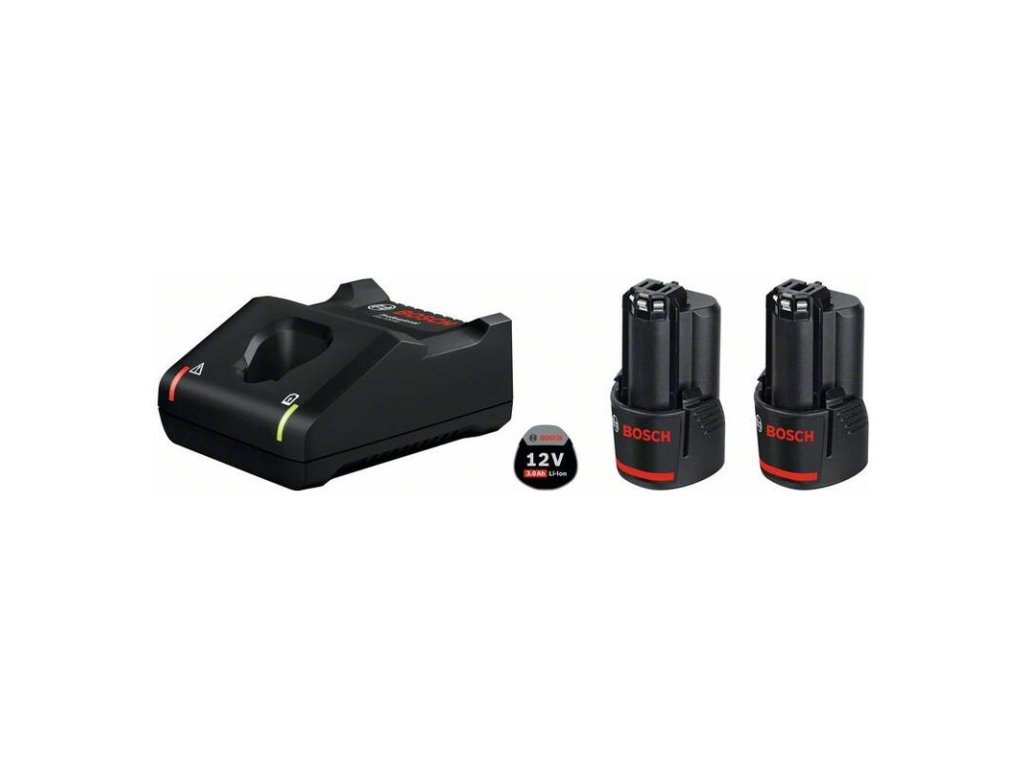 Základná súprava 2× GBA 12V 3.0Ah + GAL 12V-40, 2× akumulátor 12 V s kapacitou 3,0 Ah a rýchlonabíjačkou, GBA 12V 3.0Ah: vyššia kapacita akumulátora poskytuje výdrž vyššiu o 50 % v porovnaní s modelom 12V 2.0Ah Professional, GAL 12V-40: vysoká rýchlosť nabíjania všetkých akumulátorov triedy 12 V. Nabíjanie akumulátorov 12 V 3,0 Ah z 0 na 80 % za 36 minút., Kompatibilita so všetkým náradím Bosch Professional 12 V (Profesionálny 12 V systém), Kartónová škatuľa; 2× akumulátory GBA 12V 3.0Ah (1.600.A00.X79); Rýchlonabíjačka GAL 12V-40 Professional (1.600.A01.9R3)