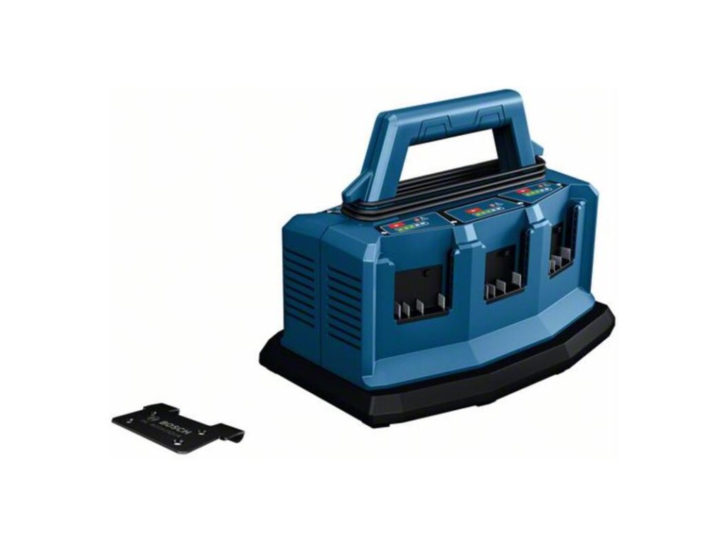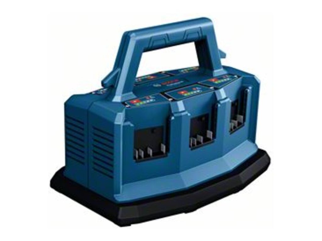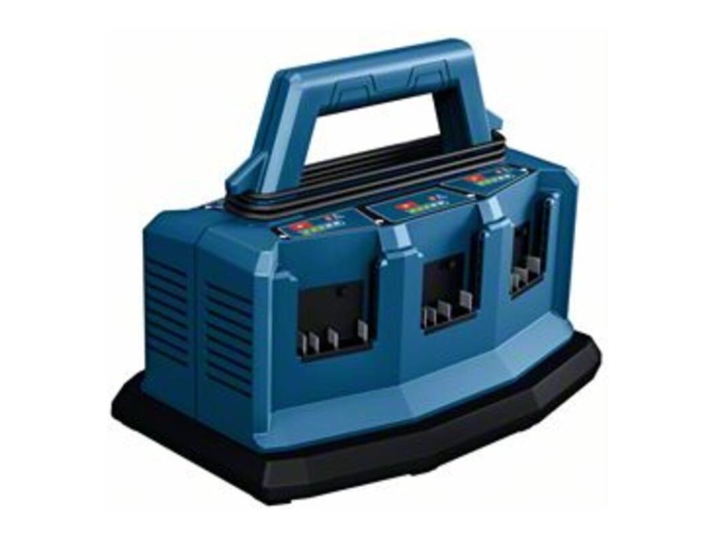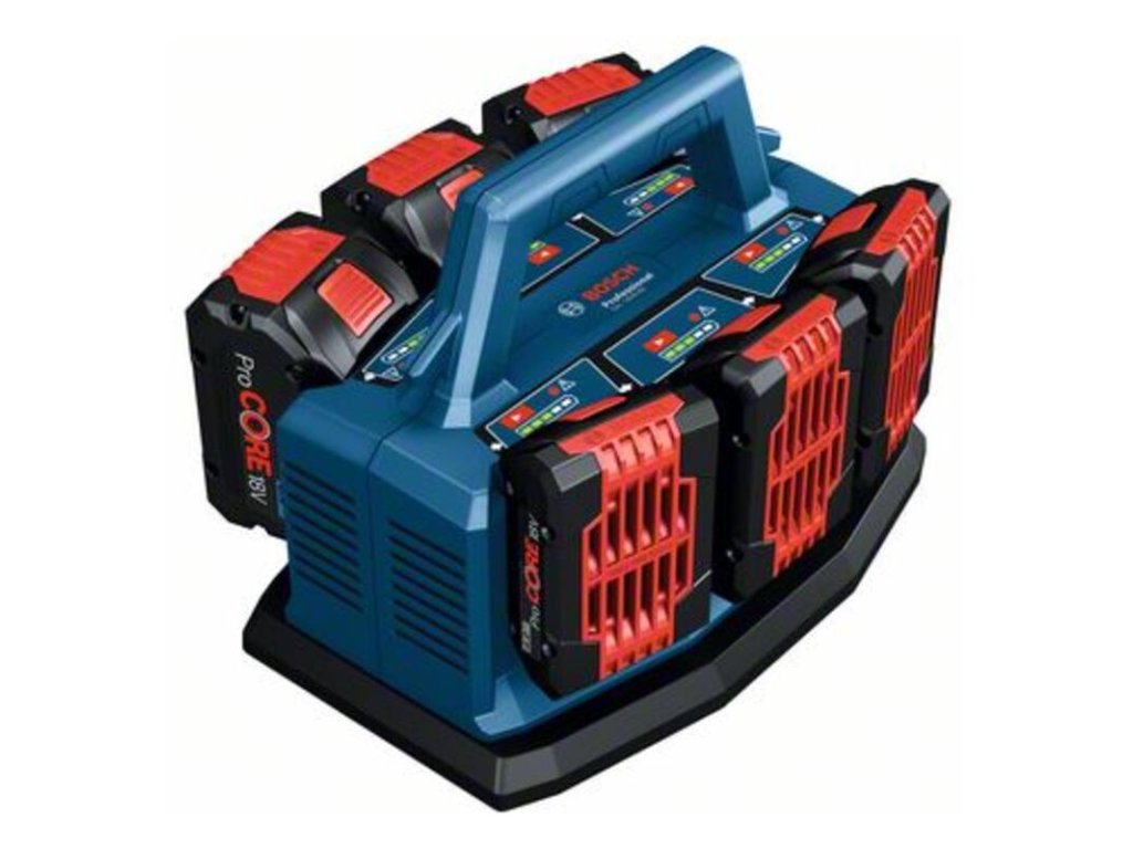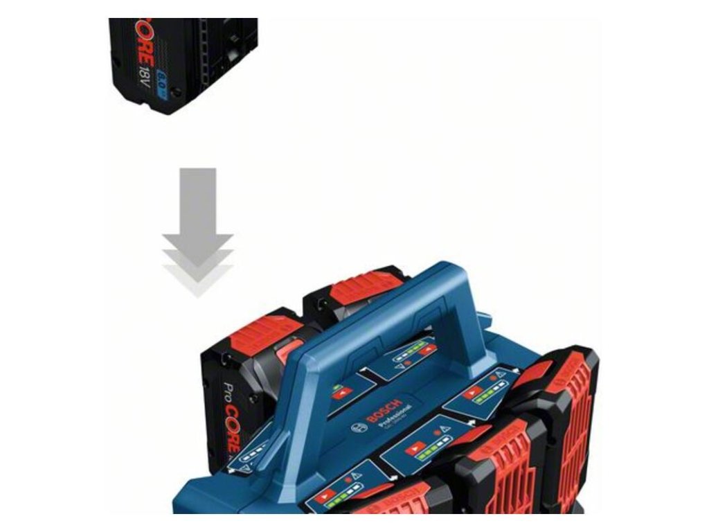 Nabíjačka GAL 18V6-80, GAL 18V6-80 umožňuje nepretržité nabíjanie na pracovisku alebo v noci vo dvoch cykloch. Prvý cyklus sekvenčne nabije až šesť akumulátorov až na 80 %. Druhý cyklus potom dokončí proces nabíjania všetkých akumulátorov na 100 %. Vďaka nabíjaciemu prúdu 8 A sa akumulátory ProCORE18V 8.0Ah nabijú na 80 % len za 42 minút. Indikátory úrovne nabitia s 5 LED na každom nabíjacom rozhraní presne informujú o procese nabíjania. Vďaka tlačidlu prioritného spustenia pri každom rozhraní možno cyklus prerušiť a okamžite začať nabíjať vybratý akumulátor. GAL 18V6-80 je kompatibilná s akumulátormi triedy 18 V. Upevnenie nabíjačky s viacerými nabíjacími rozhraniami na kufor L-BOXX zabraňuje potenciálne nebezpečným pohybom pri prenášaní. Rukoväť nabíjačky je vybavená kolíkmi umožňujúcimi úhľadné navinutie kábla pri uskladnení alebo bezpečnom prenášaní. Kartónová škatuľa; Adaptér L-BOXX na GAL 18V6-80