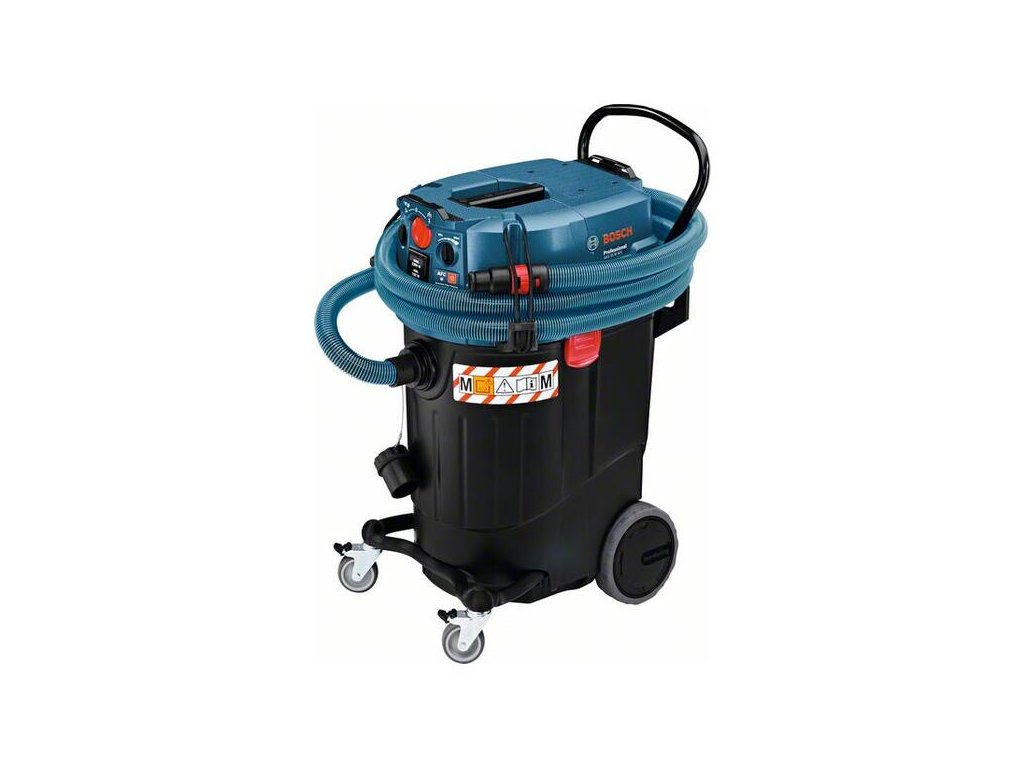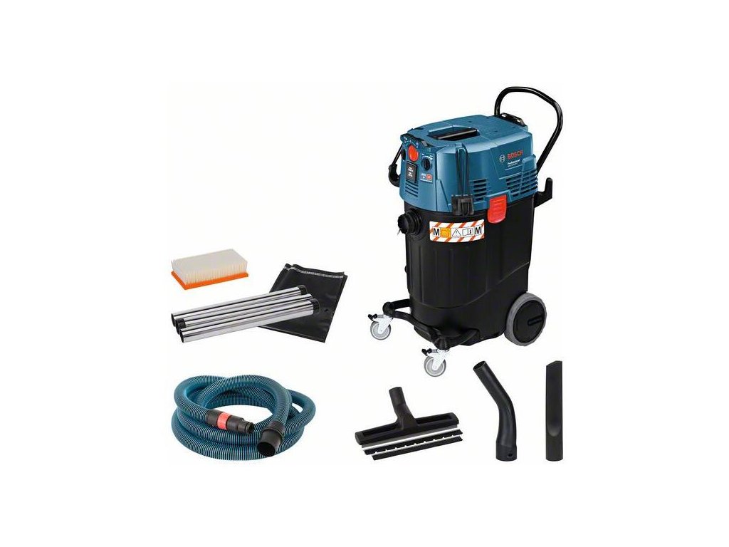 Akumulátorový vysávač GAS 55 M AFC, Všestranný vysávač na vysávanie namokro/nasucho s automatickým čistením filtra a veľkým objemom nádoby, Priestorovo úsporný, plochý skladaný filter pre optimálne využitie nádoby s objemom 55 l – ideálny na veľké množstvo prachu, Trvalý sací výkon pre neprerušovaný postup práce vďaka automatickému čisteniu filtra (AFC), Ako certifikovaný vysávač prachovej triedy M podľa normy EÚ je vhodný na veľkú časť typov prachu pre vysokú ochranu používateľa, Štrbinová hubica, priemer 35 mm (2.607.000.165); Vrecko na odpad (2.607.432.043); Koleno (2.608.000.573); Súprava podlahových dýz, priemer 35 mm (1.609.390.478); 1× plochý skladaný filter PES (2.607.432.034); 3× 0,35 m chrómovaná nasávacia rúra, Ø 35 mm (2.608.000.575); Hadica 5 m, Ø 35 mm, antistatická, s adaptérom na náradie (2.608.000.566)