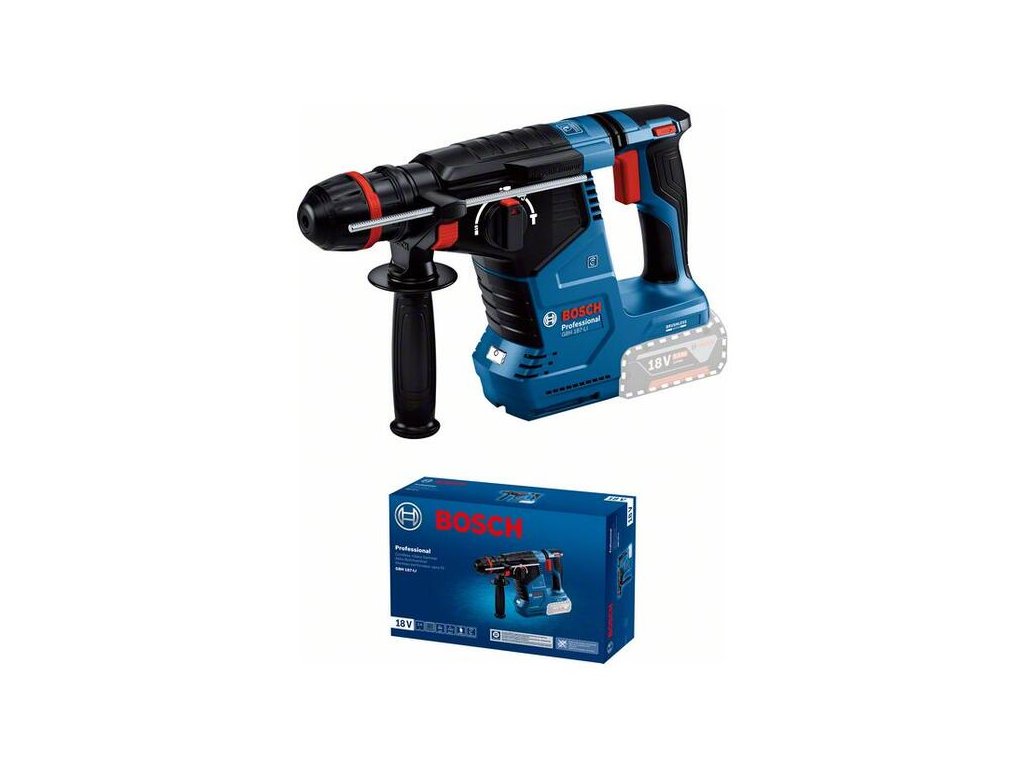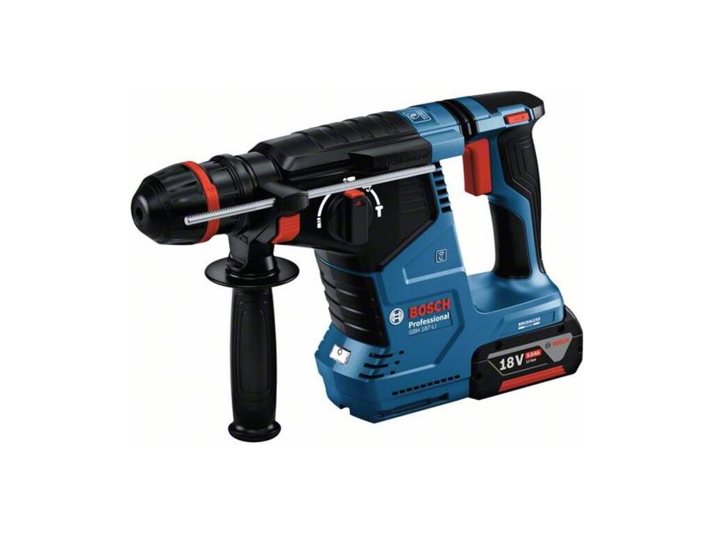 Akumulátorové vŕtacie kladivo s ONECHUCK GBH 187-LI, GBH 187-LI Professional je efektívny šampión, pokiaľ ide o rýchlosť vŕtania a počet dier na jedno nabitie akumulátora, a to vďaka bezuhlíkovému motoru a optimalizovanému mechanizmu. Funkcia Constant Speed nepretržite udržiava stabilné otáčky. Akumulátorové vŕtacie kladivo sa drží komfortnejšie vďaka konštrukcii tvaru L. Ponúka funkcie ako Vibration Control a KickBack Control na prácu s excelentným pomerom ceny a výkonu. Ľahko čitateľné rozhranie zobrazuje nabitie akumulátora a umožňuje používateľovi vybrať si medzi automatickým režimom a obľúbeným režimom preddefinovaným v aplikácii BeConnected. GBH 187-LI Professional je mimoriadne výkonné náradie na príklepové vŕtanie a ľahké sekanie do betónu alebo vŕtanie do dreva a kovu. Kartónový box