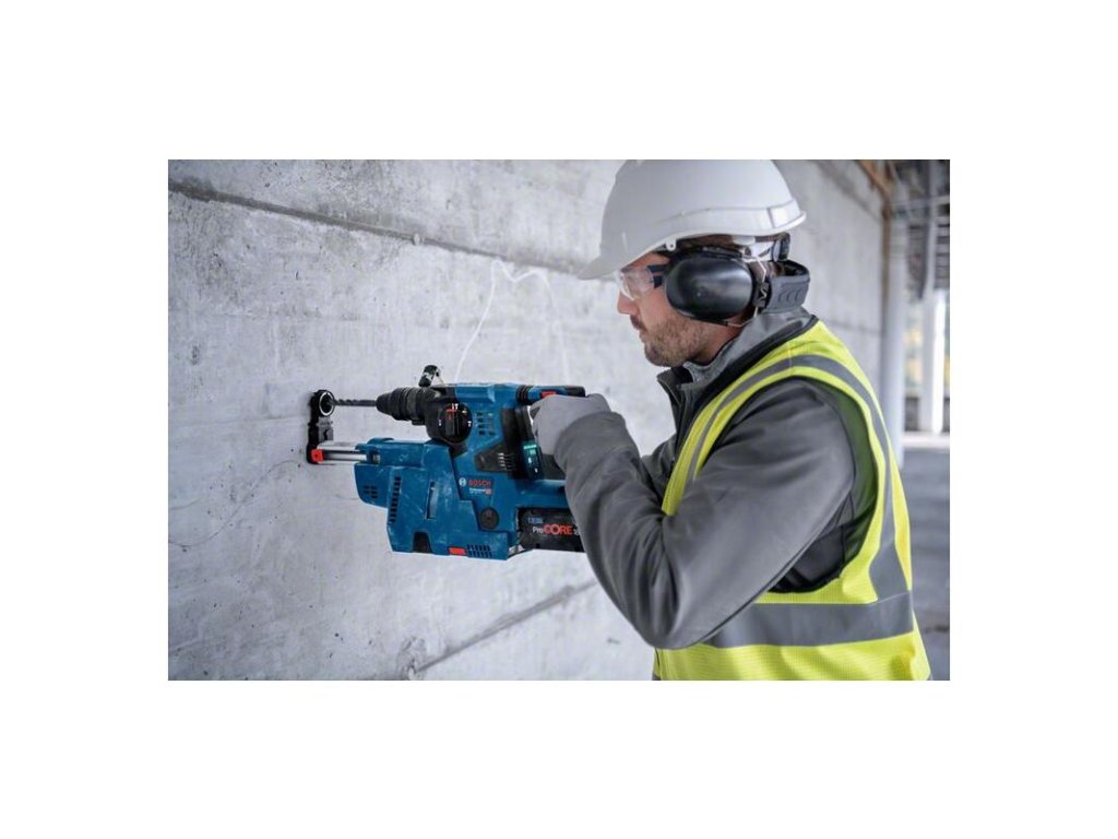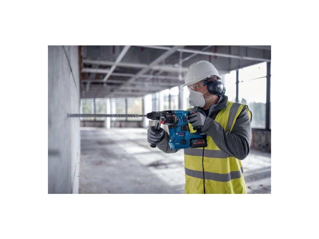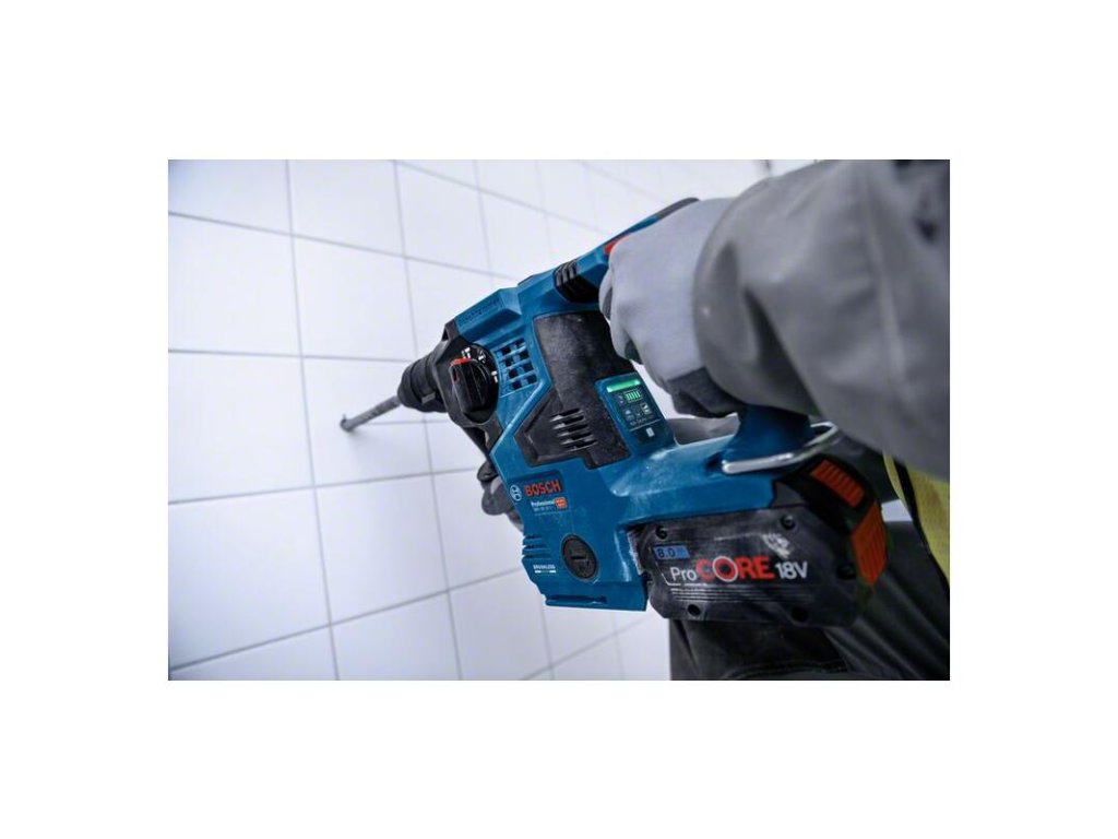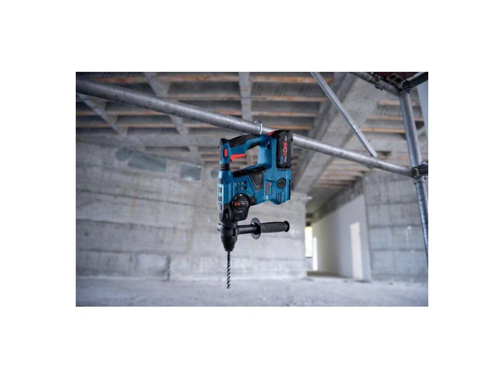 Akumulátorové vŕtacie kladivo s upínaním SDS plus GBH 18V-28 C, Akumulátorové náradie Bosch GBH 18V-28 C Professional je určené pre všetkých, ktorí vyžadujú výkon elektrického náradia a slobodu akumulátorového napájania. Toto vŕtacie kladivo má výkonný bezuhlíkový motor s energiou príklepu 3,3 J z osvedčeného mechanizmu príklepu. Ľahko čitateľné rozhranie HMI zobrazuje stav náradia a umožňuje používateľovi vybrať si z troch rôznych pracovných režimov (automatický, obľúbený, plynulý) na vynikajúce ovládanie pri každej práci. S nainštalovaným voliteľným komunikačným modulom (GCY 42) možno náradie GBH 18V-28 C pripojiť k aplikácii Bosch Toolbox a ďalej upraviť nastavenie podľa potrieb používateľa. Funkcie Vibration Control, KickBack Control, a kompatibilita s GDE 18V-16 umožňuje vŕtanie bez prachu a ponúka množstvo funkcií na ochranu používateľa. Toto vŕtacie kladivo je ideálne na príklepové vŕtanie do betónu, kameňa a muriva. Je kompatibilná so všetkými akumulátormi a nabíjačkami Bosch profesionálneho 18 V systému. Na bezprašnú a bezpečnejšiu prácu možno ľahko pripojiť vysávač GDE 18V-16 Professional. Je vybavená aj háčikom na zavesenie a svetlom LED. Kartónový box; Prídavná rukoväť (2.602.025.191); Hĺbkový doraz (1.613.001.009); Čistiaca handrička (1.619.200.413); Tuba s vazelínou (katalógové číslo 1.615.430.010)