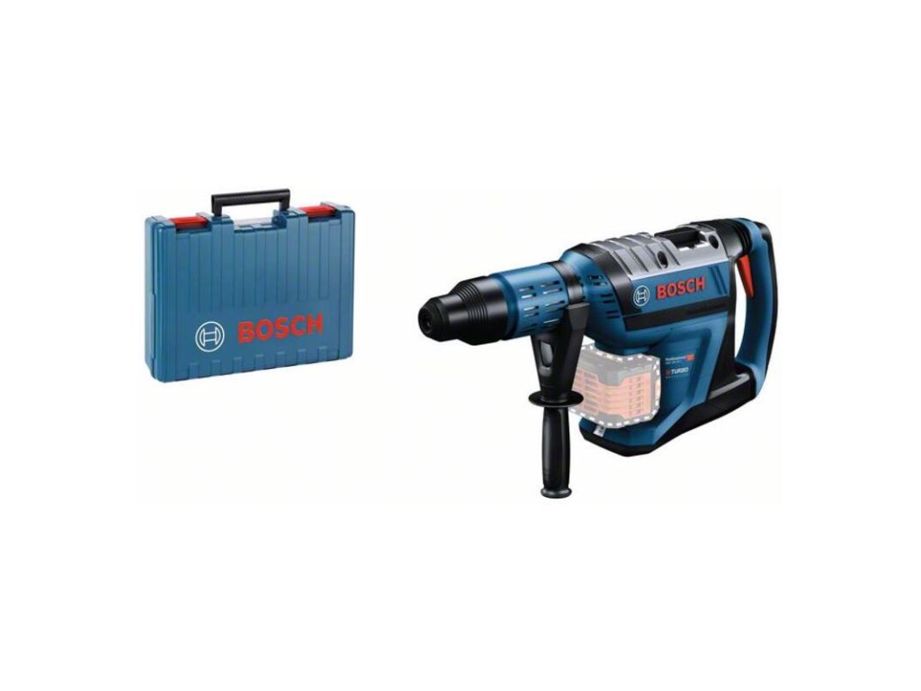 Akumulátorové vŕtacie kladivo BITURBO s SDS max GBH 18V-45 C, Vŕtacie kladivo GBH 18V-45 C Professional poskytuje slobodu s akumulátorom a výkon na úrovni sieťového náradia. Nový vysokovýkonný bezuhlíkový motor a nové akumulátory ProCORE18V poskytujú energiu príklepu 12,5 J a dostatočný výkon aj na najnáročnejšie práce s náradím SDS max. Vysoko optimalizovaná pohonná jednotka súčasne vedie k výraznému zníženiu hmotnosti GBH 18V-45 C; vďaka čomu je náradie ľahšie než porovnateľné elektrické náradie, a to aj s nasadeným akumulátorom ProCORE18V 12.0Ah. Vŕtacie kladivo je vynikajúce na vŕtanie a sekanie do betónu, kameňa a muriva a je kompatibilné so všetkými akumulátormi a nabíjačkami Bosch Professional triedy 18 V. Maximálny výkon s akumulátormi ProCORE18V ≥ 8,0 Ah. Prídavná rukoväť (1.607.031.2E7); Kufor na prenášanie (katalógové číslo 1.605.438.1G1); Tuba s vazelínou (katalógové číslo 1.615.430.010); Utierka na náradie