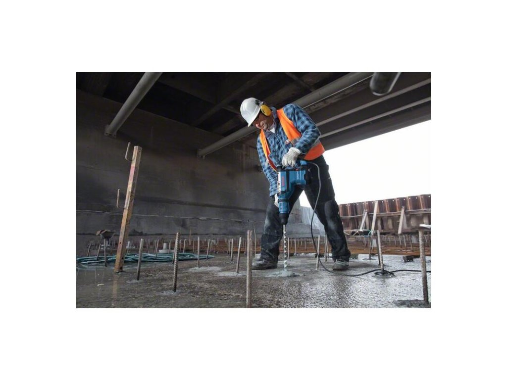 Vŕtacie kladivo s SDS max GBH 8-45 DV, GBH 8-45 DV Professional s funkciou Vibration Control je vďaka svojim schopnostiam univerzálnym náradím v kategórii elektrických vŕtacích kladív SDS max. Vynikajúci pomer výkonu k hmotnosti umožňuje ľahké používanie pri prácach kategórie SDS max a kombinuje silu s jednoduchosťou používania. Toto vŕtacie kladivo má odolné kovové komponenty zaručujúce výdrž. Silný motor poskytuje energiu príklepu 12,5 J na rýchle vŕtanie a sekanie. Prídavná rukoväť (katalógové číslo 1.612.025.004); Tuba s vazelínou (katalógové číslo 1.615.430.010); Utierka na náradie; Kufor na prenášanie (katalógové číslo 1.615.438.51A)