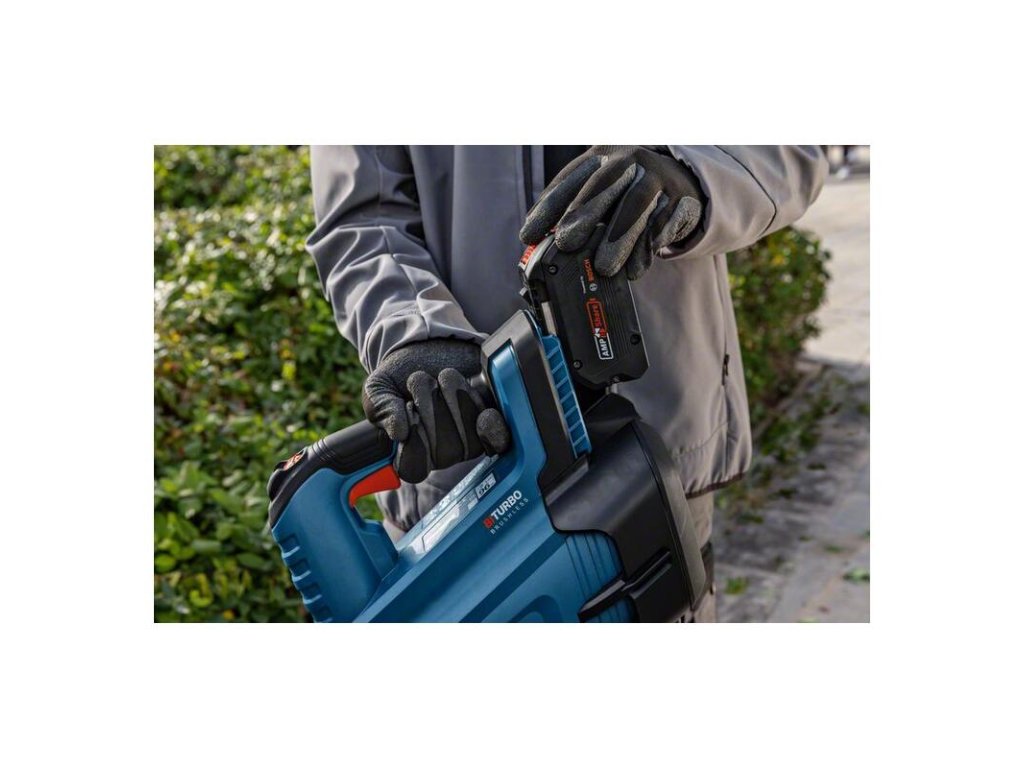 GBL 18V-750 Professional s bezuhlíkovým motorom BITURBO a axiálnym ventilátorom s vysokým výkonom poskytuje objemový prietok 780 m³/h a rýchlosť vzduchu až 198 km/h.