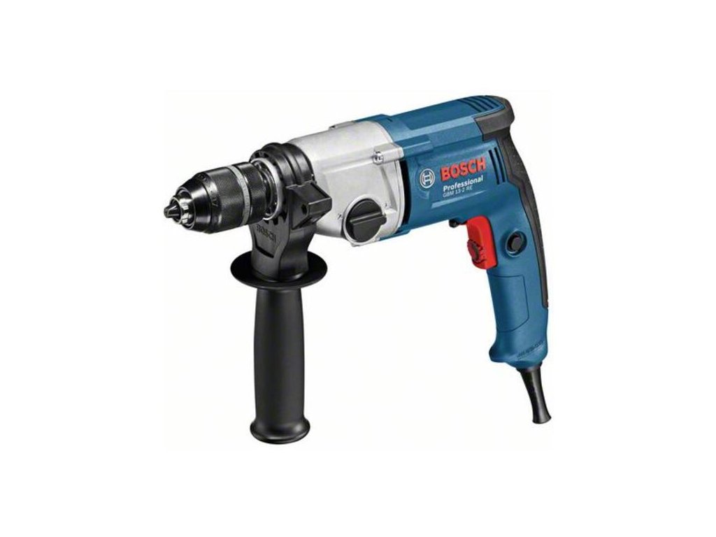 Vŕtačka GBM 13-2 RE, GBM 13-2 RE Professional je elektrická dvojrýchlostná vŕtačka určená na presné vŕtanie. Výkonný motor triedy 750 W a vysoký krútiaci moment umožňujú rýchly postup práce a vŕtanie otvorov do ocele s priemerom až 13 mm. Má kompaktnú a ergonomickú konštrukciu umožňujúcu dobrú manipuláciu s náradím a presné výsledky. Táto vŕtačka je vybavená dvojrýchlostnou prevodovkou s kolieskom prednastavenia rýchlosti na presné výsledky pri všestrannom použití. Toto náradie je určené na vŕtanie do kovu a dreva. Rýchloupínacie skľučovadlo 13 mm (2.608.572.105); Prídavná rukoväť (2.602.025.190); Hĺbkový doraz 210 mm (1.613.001.010); Kartónová škatuľa