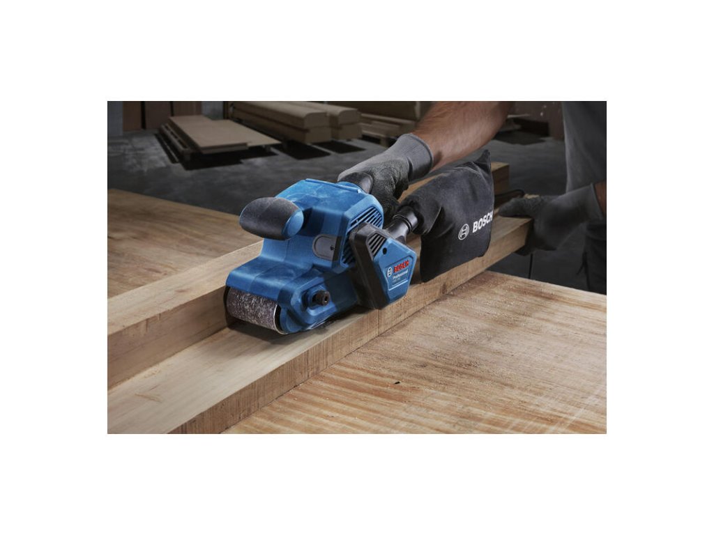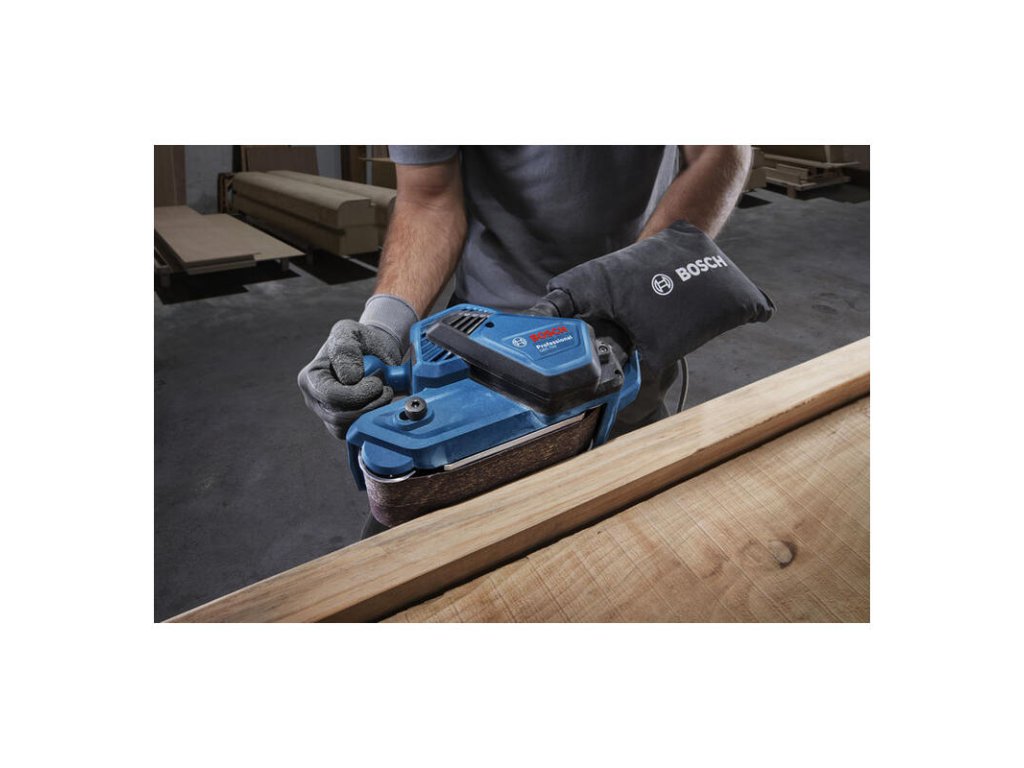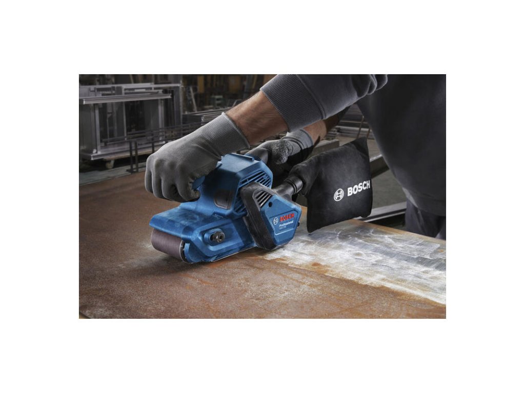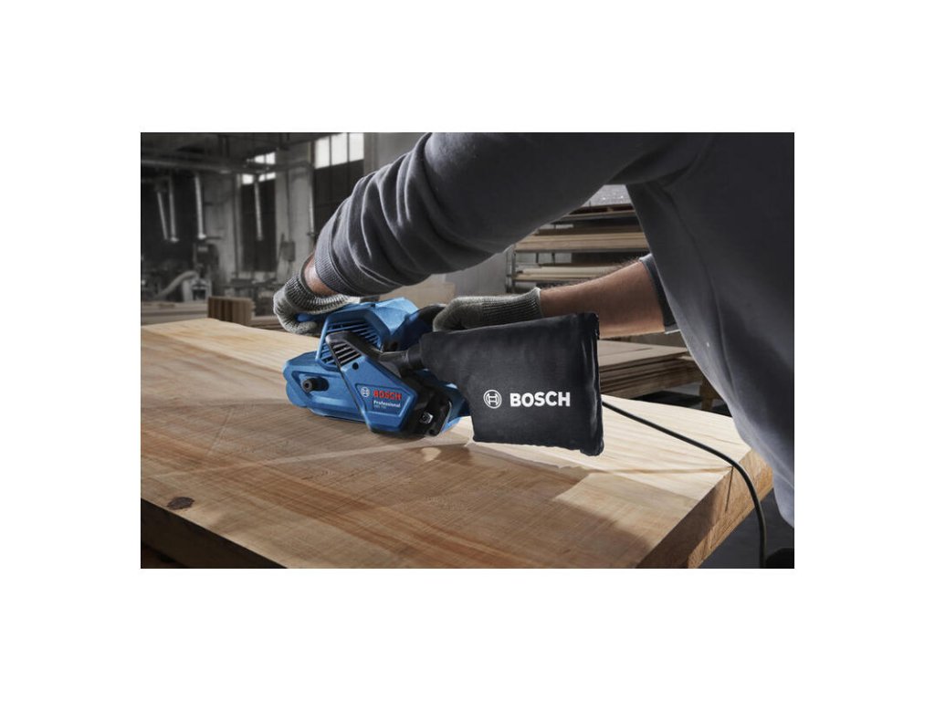 Pásová brúska GBS 750, Brúsenie veľkého množstva dreva môže byť časovo veľmi náročné a únavné. Naša pásová brúska GBS 750 Professional skracuje dobu brúsenia a zlepšuje celkovú efektivitu vďaka výnimočnej rýchlosti úberu materiálu a systému motora triedy 850 W. Jej dlhodobé používanie je komfortné vďaka ergonomickej konštrukcii úchopu a dobre vyváženej hmotnosti 3,6 kg, ktoré umožňujú používanie jednou rukou alebo oboma rukami. Vynikajúcu kvalitu povrchovej úpravy zaručuje mäkká podložka filtrujúca vibrácie a pevná, tvrdá základňa zaručujúca ideálnu stabilitu náradia pri brúsení. Menej času nutného na opravu náhodných škrabancov, keďže pás zostáva pri brúsení stabilne v strede. Presvedčíte sa, že toto náradie odstraňuje materiál rýchlejšie, má vynikajúce odsávanie prachu a udržiava pracovisko čisté. A vyprázdnenie odsatého prachu je rýchlejšie a jednoduchšie vďaka špeciálne navrhnutému vrecku na prach so zipsom. Pásová brúska Bosch GBS 750 Professional je ideálna na brúsenie veľkých dosák z mäkkého a tvrdého dreva, dosák MDF, guľatiny atď., ako aj na odstraňovanie hrdze z kovu. Kartónová škatuľa (1.619.PC3.240); Látkový brúsny pás (F 03E 02G 7JS); Vrecko na prach (1.619.PC2.373)