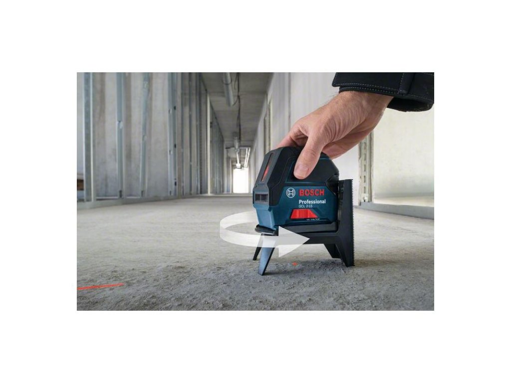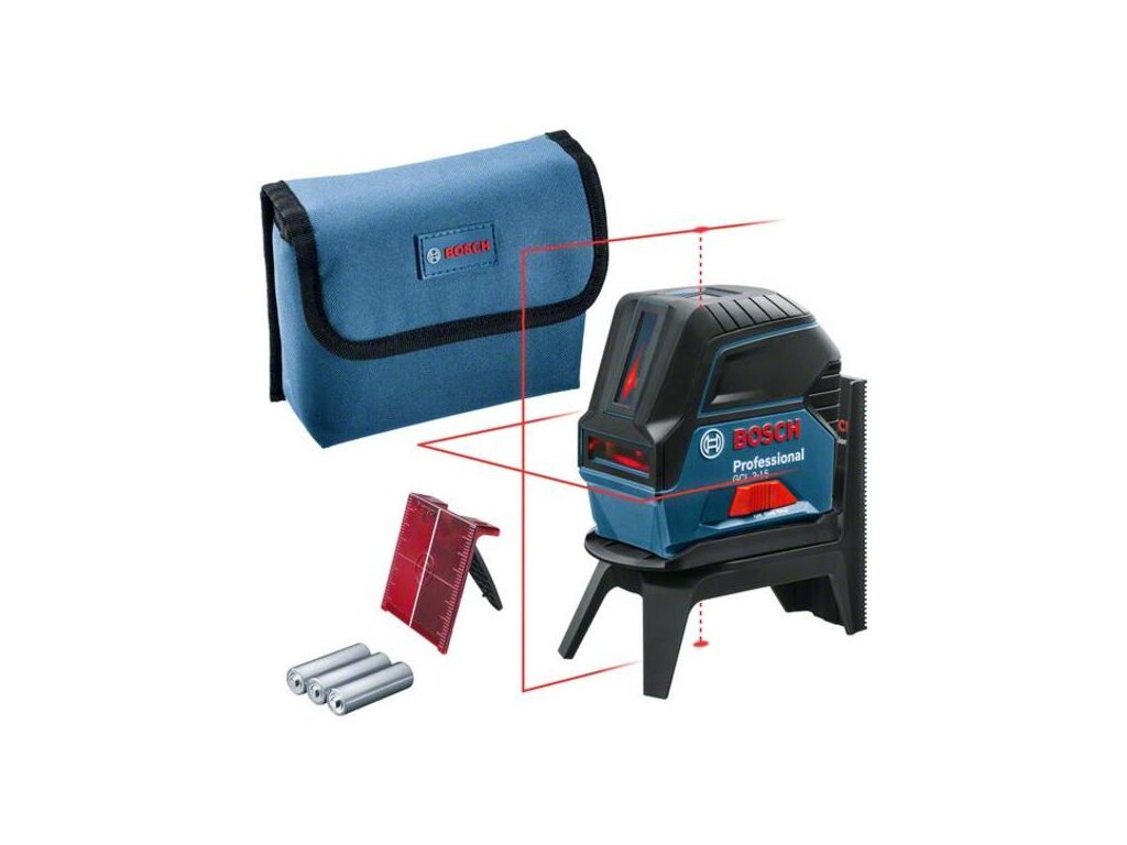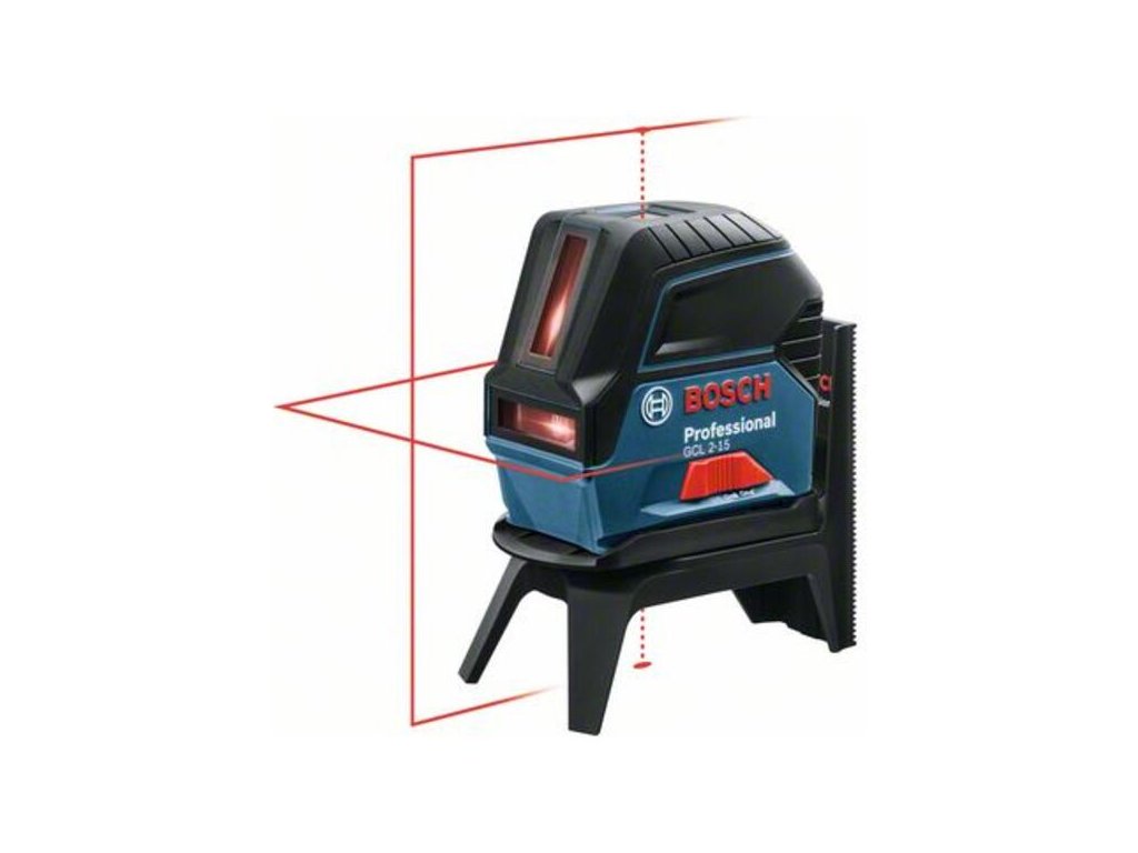 Kombinovaný laser GCL 2-15, Kombinovaný laser GCL 2-15 Professional presvedčí vďaka svojej kompaktnej konštrukcii a je vhodný najmä na nivelačné práce na krátku vzdialenosť. Vďaka projekcii horizontálnej a vertikálnej laserovej línie a dvom vycentrovaným bodom kolmice tento kombinovaný laser umožňuje rýchle vyrovnávanie. Body kolmice umožňujú ľahké a jednoduché prenášanie bodov. Zarovnanie laserových línií podľa bodov kolmice je jednoduché vďaka rotačnému držiaku RM 1 Professional. GCL 2-15 Professional je vhodný na rozličné práce, ako napr montáž políc a okien, inštaláciu kanalizačných potrubí a kladenie podlahovín. Takisto umožňuje prenos bodov na montáž svietidiel. GCL 2-15 Professional poskytuje pracovný rozsah laserových línií až 15 m a samonivelizáciu za menej než 4 sekundy. Tento kombinovaný laser je ideálny na používanie s držiakom RM 1 Professional, ktorý možno jednoducho pripojiť použitím zásuvného mechanizmu. Je odolný vďaka ochrane proti prachu a striekajúce vode na úrovni IP54. Uzamykací mechanizmus kyvadla sa pri vypnutí prístroja aktivuje, aby bolo kyvadlo zabezpečené počas prepravy. Laserová cieľová platnička; Ochranné puzdro; Otočný držiak RM 1 Professional (0.601.092.600); 3× batéria 1,5 V LR6 (AA)