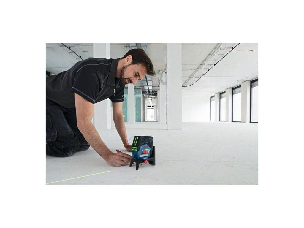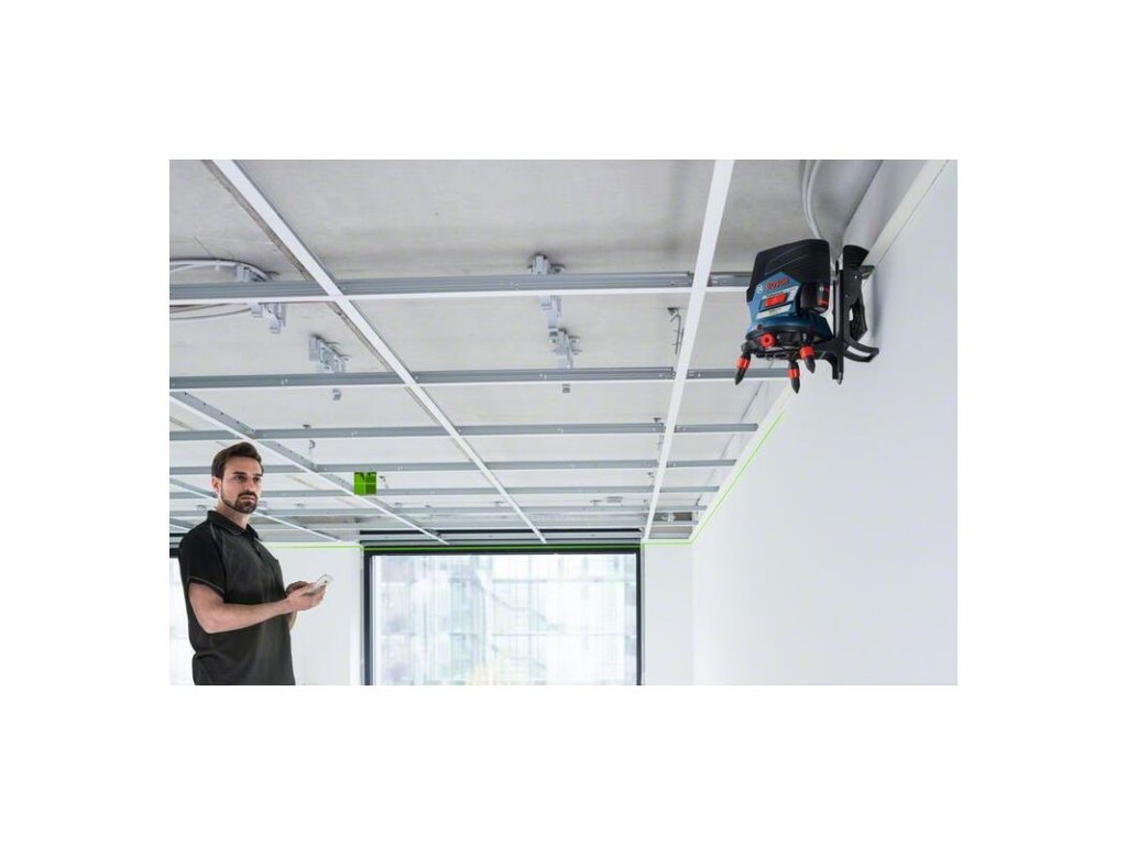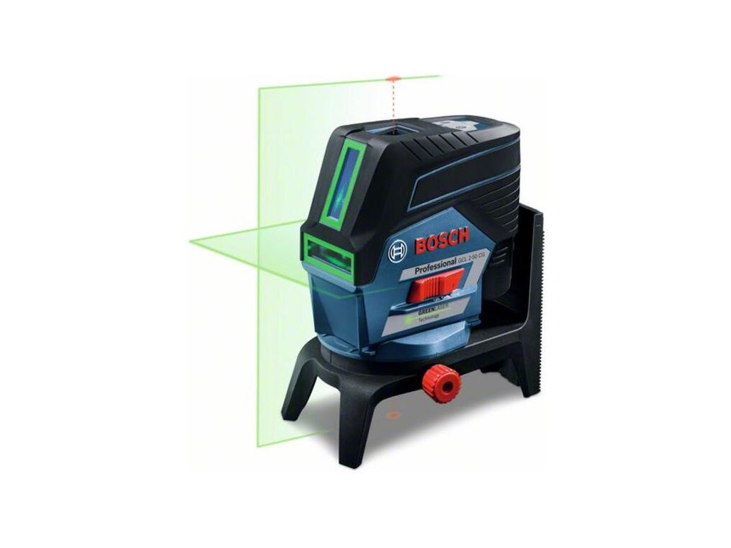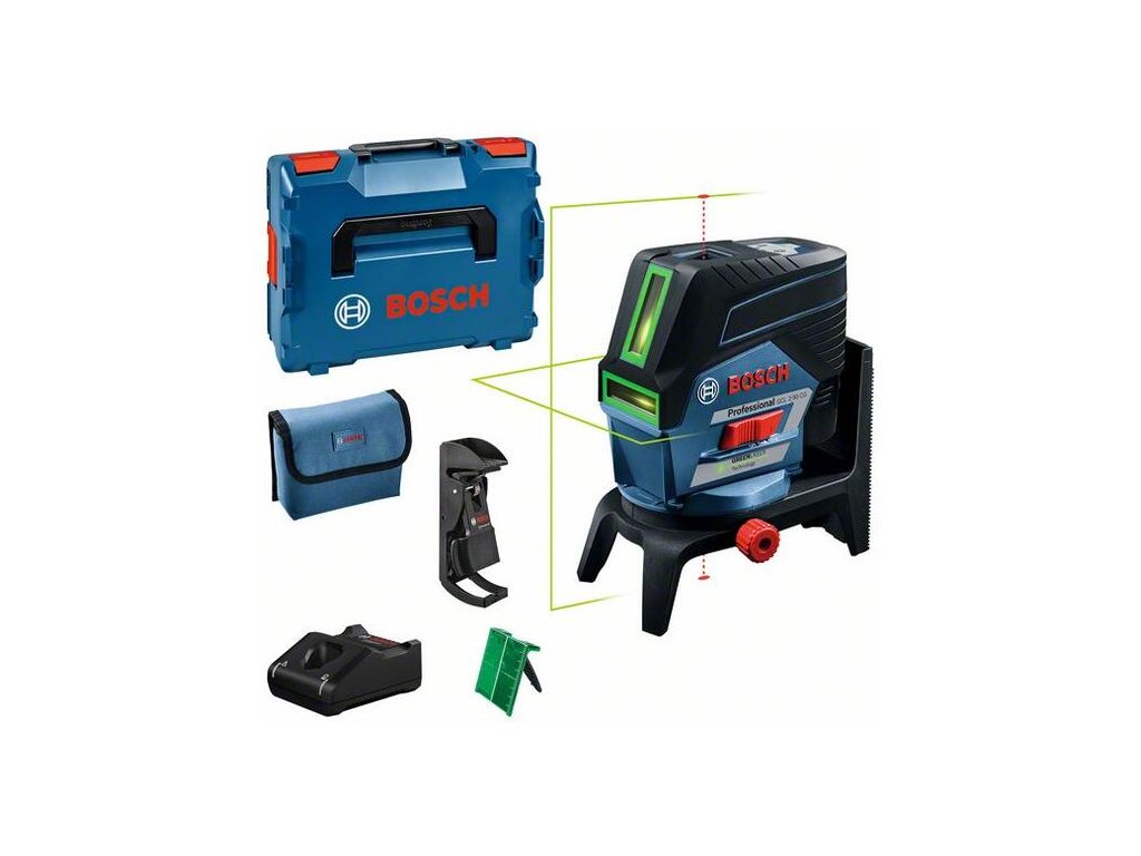 Kombinovaný laser GCL 2-50 CG, Kombinovaný laser GCL 2-50 CG Professional poskytuje vynikajúcu viditeľnosť a množstvo inteligentných funkcií. Výrazná zelená horizontálna a vertikálna laserová línia a dva vycentrované body kolmice zaručujú optimálnu viditeľnosť; rozhranie Bluetooth® umožňuje vzdialené ovládanie prostredníctvom aplikácie v inteligentnom telefóne. Systém duálneho napájania umožňuje kompatibilitu s akumulátorom 12 V Li-ion alebo bežnými alkalickými batériami a zaručuje vyššiu flexibilitu. Tento kombinovaný laser je určený na horizontálne a vertikálne nastavenie s veľkým rozsahom takmer 360° a je vhodný na sadrokartonárske práce a dokončovacie interiérové práce. GCL 2-50 CG Professional poskytuje vyššiu viditeľnosť až na 20 m bez prijímača a 50 m s prijímačom. Motorizované ovládanie RM 3 Professional umožňuje presné umiestnenie podľa vycentrovaných bodov kolmice; RM 2 Professional využíva manuálne nastavenie. Stropná svorka; Laserová cieľová platnička; L-BOXX 136 (1.600.A01.2G0); Ochranné puzdro; Otočný držiak RM 2 Professional (0.601.092.700); 1× akumulátor GBA 12V 2.0Ah (1.600.Z00.02X); Rýchlonabíjačka GAL 12V-40 Professional (1.600.A01.9R3)
