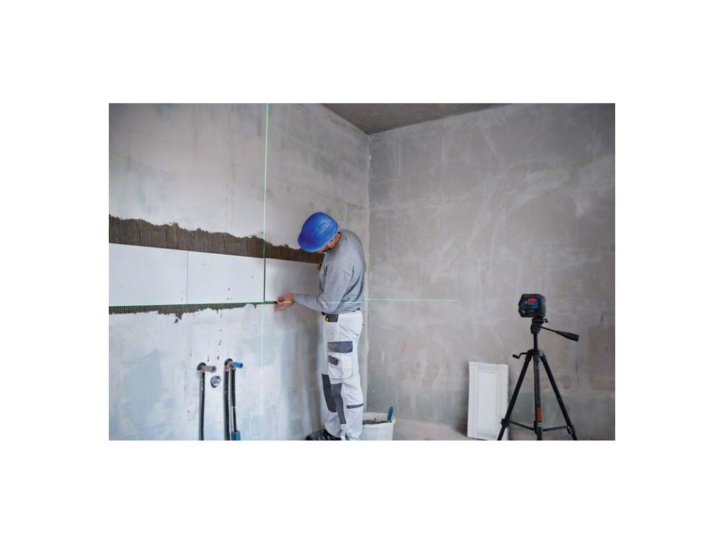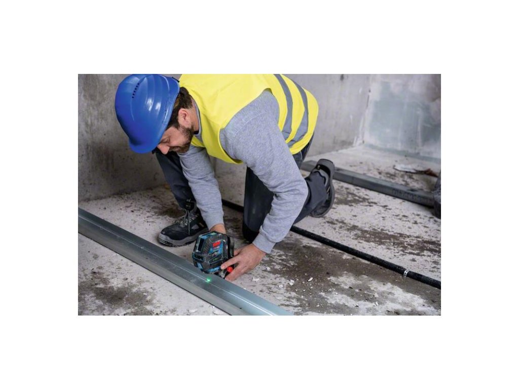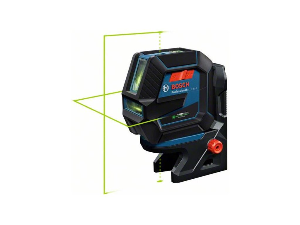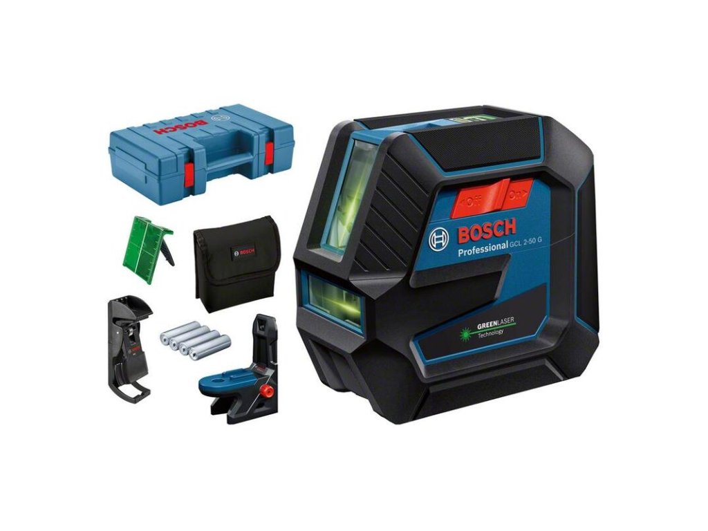 Kombinovaný laser GCL 2-50 G, Odolný kombinovaný laser GCL 2-50 G Professional uľahčuje vyrovnávanie a prenášanie výšok. Môžete sa naplno sústrediť na prácu vďaka odolnej konštrukcii, pogumovanému krytu poskytujúcemu lepšiu ochranu priezorov a ochranu proti prachu a fŕkajúcej vode na úrovni IP 64. Hlavný vypínač a jednotlačidlové ovládanie uľahčujú používanie. Nepretržitá aktivácia režimu laserového prijímača GCL umožňuje okamžite sa pustiť do práce. Vysoko zreteľné zelené laserové línie a body zvislice zvyšujú viditeľnosť v jasnejšom prostredí. Rýchle a bezpečné upevnenie vďaka otočnému držiaku RM 10 Professional s veľmi silnými magnetmi. RM 10 Professional umožňuje presné nastavenie laserových línií podľa vodiacich bodov. GCL 2-50 G Professional je robustný prístroj ideálny na rozličné práce, napr. montáž konštrukcií suchej výstavby, montáž zárubní a dvier a prenášanie výškových bodov uľahčujúce montáž. GCL 2-50 G Professional poskytuje pracovný rozsah línií až 15 m (body: až 10 m), možnosť predĺženia až na 50 m s voliteľným prijímačom LR 7 Professional. RM 10 Professional je kompatibilný s voliteľnou stropnou svorkou DK 10 Professional na upevnenie na strop alebo jemné nastavenie výšky. Otočný držiak RM 10 Professional (0.601.092.A00); Svorka na strop DK 10 Professional; Laserová cieľová platnička; Taška; 4× batéria 1,5 V LR6 (AA); Kufor na prenášanie