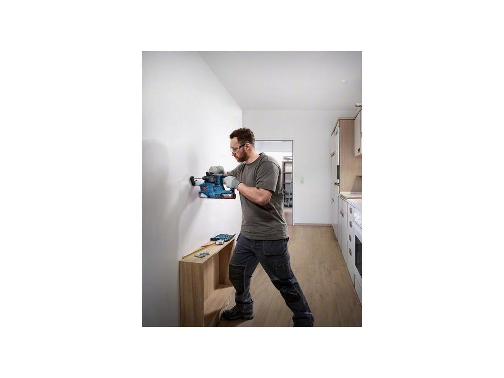 Integrovaný vysávač GDE 12, GDE 12 Professional je optimálny akumulátorový systém na odsávanie prachu pri vŕtaní s GBH 185-LI Professional do betónu a muriva. Je vybavený filtrom HEPA na optimalizovaný zber prachu, odstraňuje 99,97 % prachových častíc väčších než 0,3 mikrometra. Tento odsávací systém je vybavený funkciou automatického napájania Auto Power, ktorý sa automaticky zapína pri vŕtaní a vypína dve sekundy po uvoľnení spínača vŕtačky. Toto náradie je určené na odsávanie prachu s vŕtacími kladivami GBH 185-LI Professional pri vŕtaní do betónu a muriva.