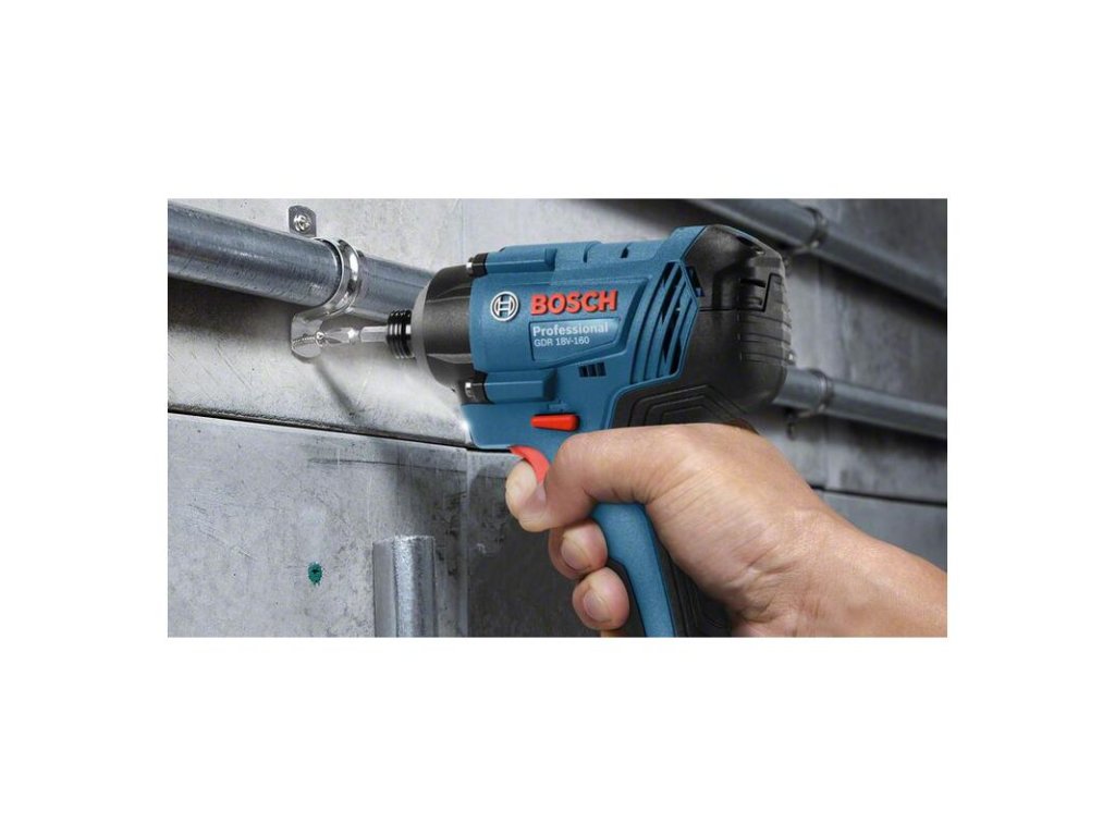 Akumulátorový rázový uťahovač GDR 18V-160, Výkonný a robustný rázový uťahovač umožňuje rýchlejšiu prácu, Vysoký krútiaci moment, vysoká frekvencia rázov a rýchle otáčanie umožňujú rýchle skrutkovanie a vŕtanie do kovu a dreva, Odolná konštrukcia s robustnou prevodovkou, motor s otvorenou konštrukciou a ochrana článkov akumulátora zaručujú dlhšiu životnosť, Jednoduchý servis: ľahká výmena prevodovky a uhlíkov, Kartónová škatuľa; 1/2 vložka L-BOXX na náradie (1.600.A00.M7R)