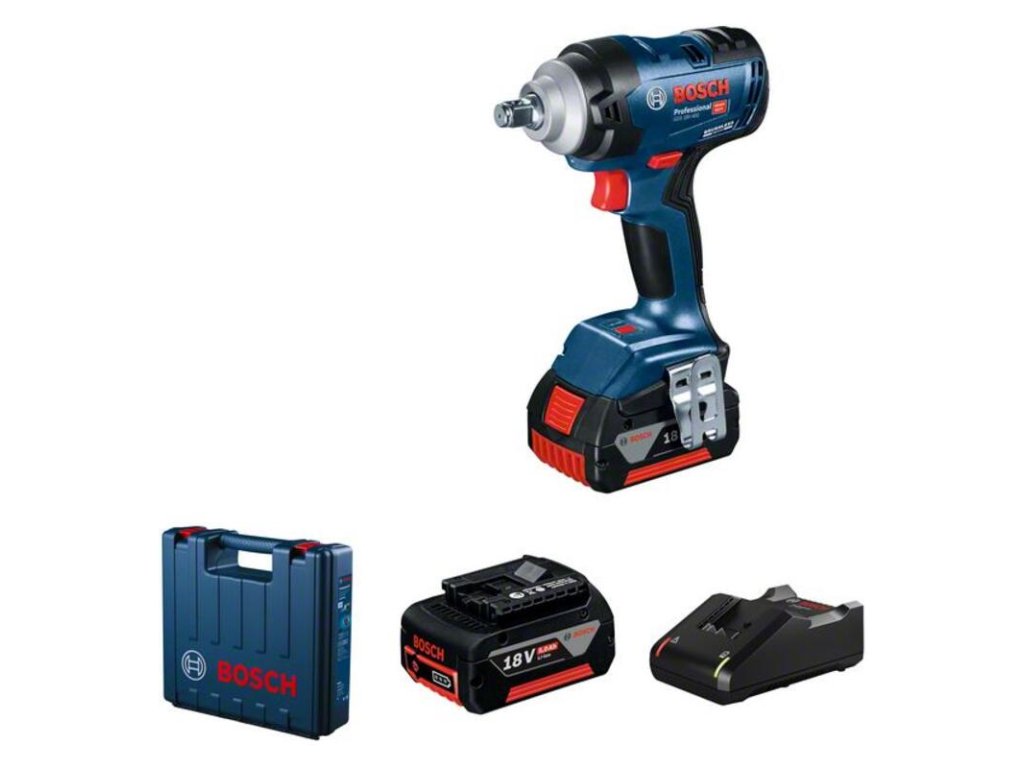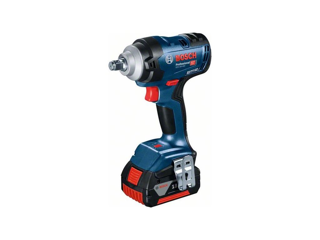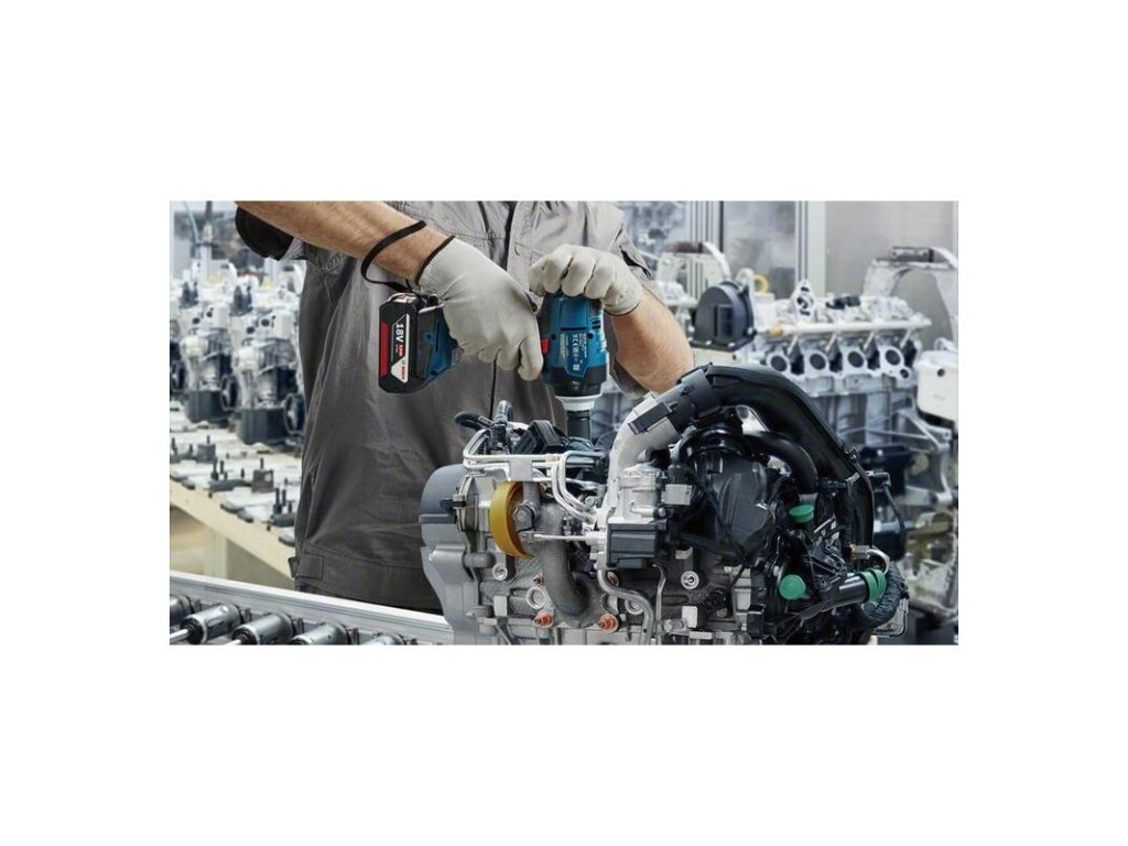 Akumulátorové rázové uťahovače GDS 18V-400, Akumulátorový rázový uťahovač GDS 18V-400 Professional dominuje triede náradia so stredným krútiacim momentom vďaka svojmu výkonu a robustnosti. Je vynikajúci na prácu so skrutkami M10 a M12. S uťahovacím momentom 400 Nm je tento rázový uťahovač dostatočne výkonný na doťahovanie skrutiek maximálneho priemeru M20. Vyššiu odolnosť tohto náradia navyše vylepšuje dlhšia životnosť jeho kľúčových komponentov. Tento rázový uťahovač radu Bosch Professional Heavy Duty je vynikajúci na používanie v extrémnom prostredí. 2× akumulátory GBA 18V 5.0Ah (1.600.A00.2U5); Rýchlonabíjačka GAL 18V-40 Professional (1.600.A01.9RJ)