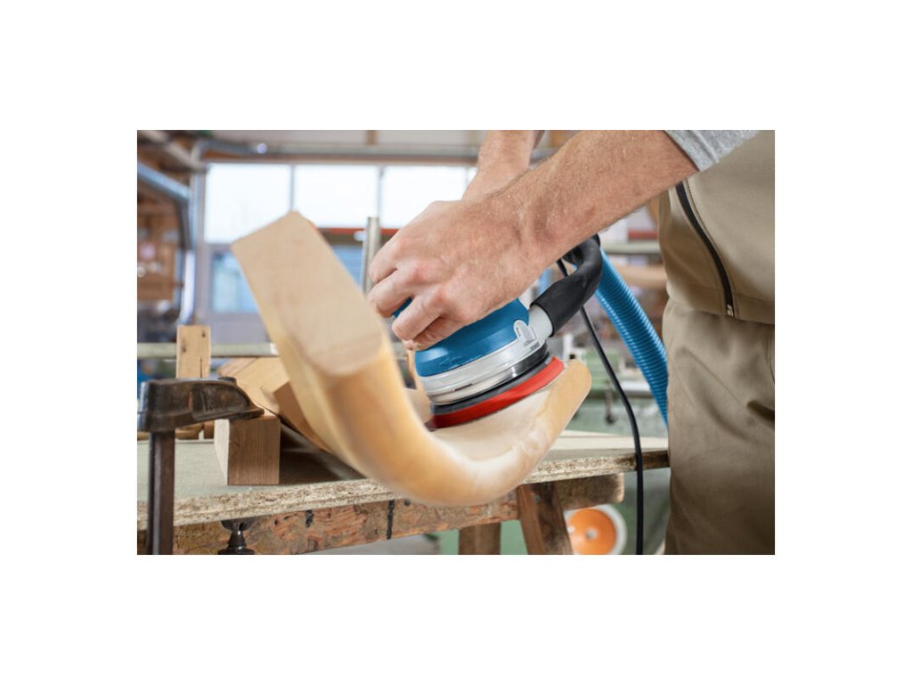 Excentrická brúska GET 55-125, Bosch GET 55-125 Professional je aktívne poháňaná elektrická excentrická brúska s priemerom 125 mm poskytujúca vynikajúce ovládanie a vynikajúcu manipuláciu. Konštrukcia s perfektnou ergonomickou prednou dlaňovou opierkou a rukoväťou s veľmi malým obvodom umožňuje najlepšie ovládanie náradia. Brúsna doska s množstvom otvorov umožňuje praktické použitie všetkých brúsnych papierov bez ohľadu na množstvo otvorov. Je takisto vybavená extrémne výkonným motorom s príkonom 550 W a aktívnym otáčaním dosky, vďaka čomu poskytuje vynikajúci úber. Táto elektrická brúska je určená ná základné brúsenie, priebežné brúsenie, odstraňovanie náterov, záverečné spracovanie a leštenie povrchov. Možno ju použiť na drevo, dyhu, nátery, tmely, ako aj minerálne či akrylové povrchy. Je kompatibilná so systémom odsávania prachu Bosch Click & Clean. Kartónová škatuľa; Brúsny tanier (125 mm) (2.608.601.332); 1× brúsny list M480, Best for Wood and Paint, 120 (dostupný samostatne ako súprava 5 kusov: 2.608.621.146); Ochranný prstenec na 125 mm (2.607.017.496); Prídavná rukoväť vrátane skrutky (2.607.017.500); Sacia objímka na 125 mm (2.607.017.498); Šesťhranný kolíkový kľúč