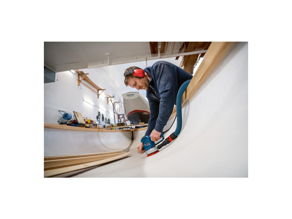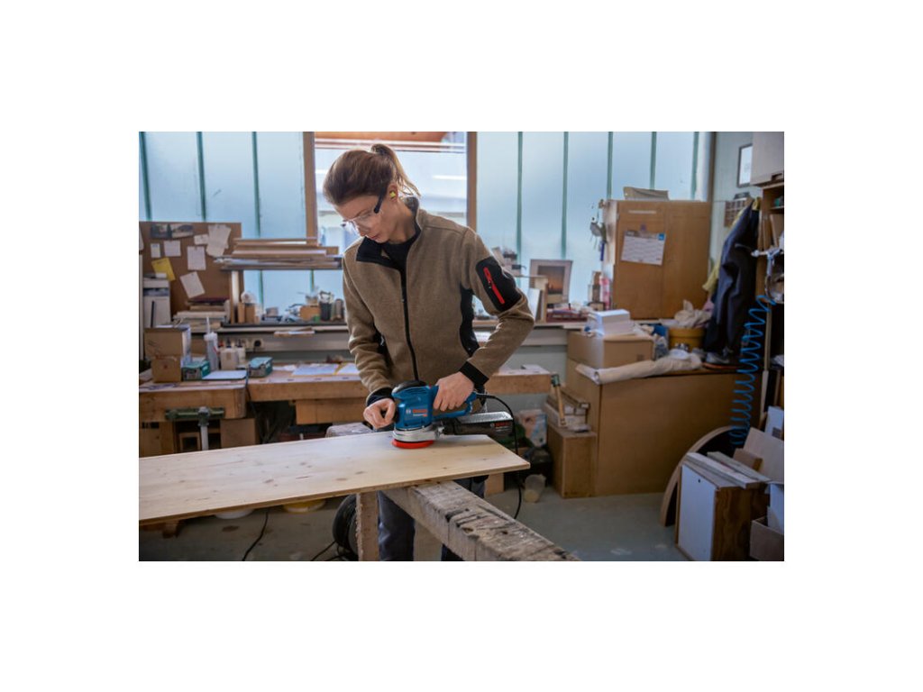 Excentrická brúska GEX 34-125, GEX 34-125 Professional je robustná excentrická brúska s vysokou rýchlosťou brúsenie v kategórii 125 mm. Konštantnú rýchlosť a vysoká rýchlosť brúsenia poskytujú efektívne výsledky aj pri náročných aplikáciách. Hliníková príruba zaisťuje dlhú životnosť náradia a je ideálny pre náročnú prácu. Možnosť predvoľby rýchlosti umožňuje použitie pri aplikáciách s rôznymi druhmi materiálov. Táto excentrická brúska je určená na brúsenie, medzibrúsenie, odstraňovanie lakov a povrchových úprav na drevo, dyhu, lak a výplň, ako aj minerálne a akrylové povrchy. Je kompatibilný so systémom odsávania prachu Bosch Click & Clean. GEX 34-125 Professional je tiež vybavená boxom na prach s vstavaným systémom Bosch Micro Filter a brúsnou podložkou vybavenou suchým zipsom pre upevnenie brúsnych papierov. Dodáva sa s multidierovanou podložkou pre najlepšie odsávanie prachu. Kartónová škatuľa; 1× brúsny list s viacerými otvormi C470, Best for Wood + Paint, 120 (dostupné samostatne ako súprava 5 kusov: 2.608.608.X75); Brúsny tanier (125 mm) (2.608.601.332); 1× papierové vrecko na prach (dostupné samostatne ako súprava 3 ks: 2.605.411.067); 1× protiprachový adaptér (2.600.306.007)