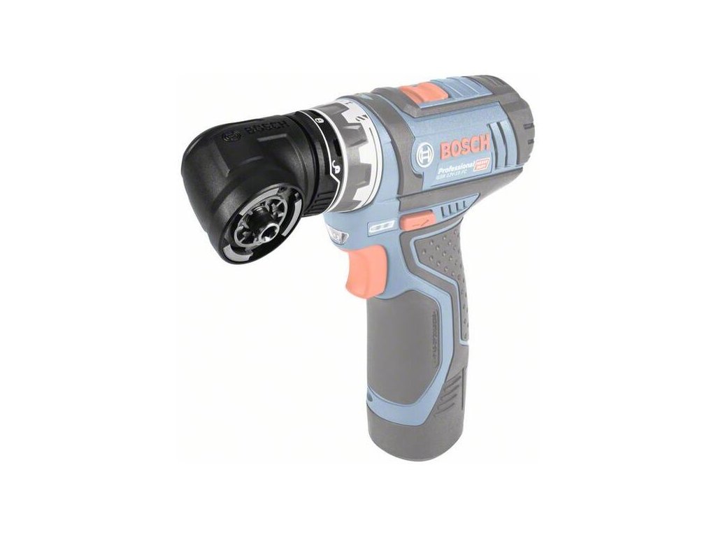 Adaptér FlexiClick GFA 12-W, Prehodnoť svoje limity – flexibilita piatich riešení v jednom kompaktnom náradí, Vysoká flexibilita – GFA 12-W zmení akumulátorový skrutkovač na uhlový vŕtací skrutkovač, Kompatibilný s GSR 12V-15 FC (0 601 9F6 ...), Upínanie „One-Click“ zaručuje pevné upnutie na náradie jediným kliknutím. Na GFA 12-W je možné nasadiť všetky ostatné nadstavce FlexiClick (napr. výmenné skľučovadlo GFA 12-B), Kompaktný dizajn – kompaktný konštrukčný tvar (dĺžka hlavy 61 mm) umožňuje pracovať na mimoriadne úzkych miestach, Jednoduché ovládanie – GFA 12-W možno zaaretovať v 16 rôznych polohách (360°) bez toho, aby sa nadstavec musel odobrať z akumulátorového skrutkovača