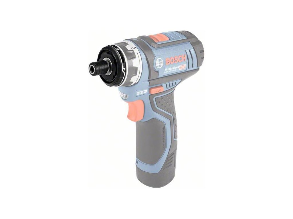 Adaptér FlexiClick GFA 12-X, Prehodnoť svoje limity – flexibilita piatich riešení v jednom kompaktnom náradí, Šesťhranný držiak skrutkovacích hrotov 1/4" s aretovateľným mechanizmom, Kompatibilný s GSR 12V-15 FC (0 601 9F6 ...), Upínanie „One-Click“ zaručuje pevné upnutie na náradie jediným kliknutím, Plné ovládanie – nadstavec s držiakom skrutkovacích hrotov GFA 12-X umožňuje pevne zaistiť vložené skrutkovacie hroty, aby náhodne nevypadli, Kompaktný dizajn – krátky konštrukčný tvar (159 mm s GSR 12 V-15 FC) umožňuje precíznu prácu, Kartónová škatuľa